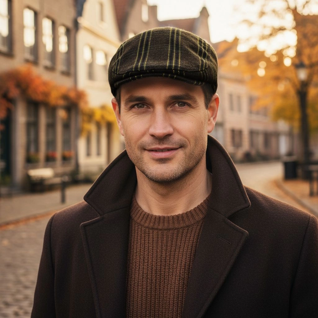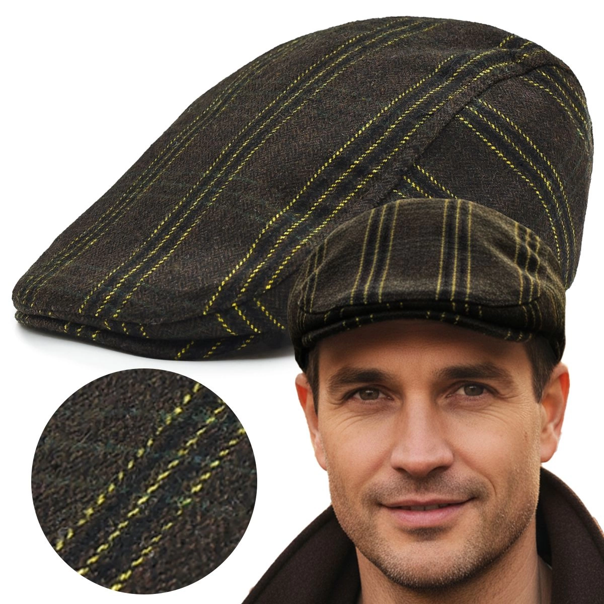 Jesienno-Zimowy Kaszkiet Wełniany - Pako Jeans - Brąz w Pasy