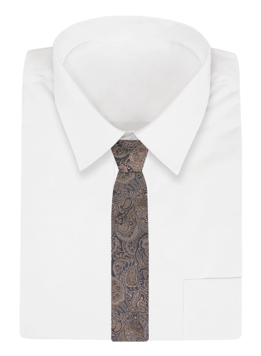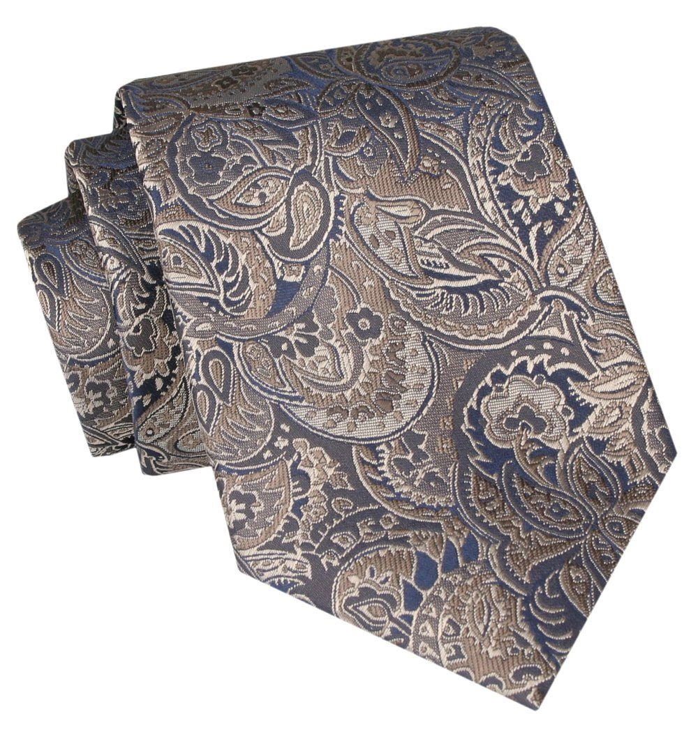 Klasyczny, Szeroki Krawat Męski CHATTIER - Brąz, Wzór Kwiatowy