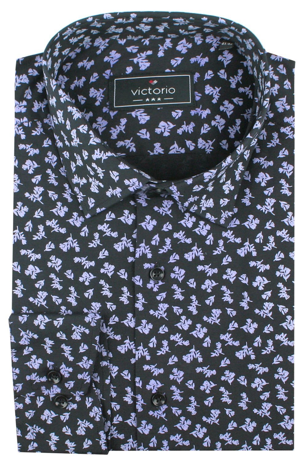 Koszula Męska, Elegancka o Regularnym Kroju - Victorio - Czarna w Kwiatki