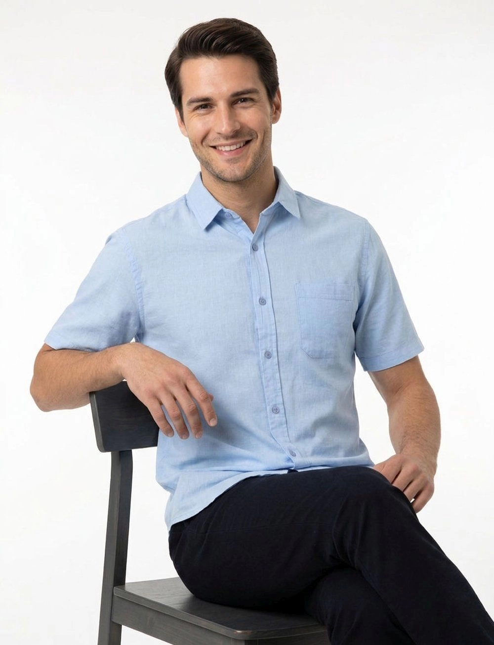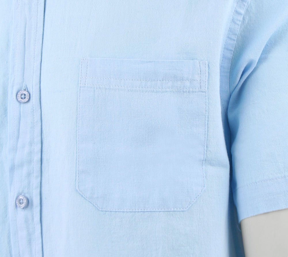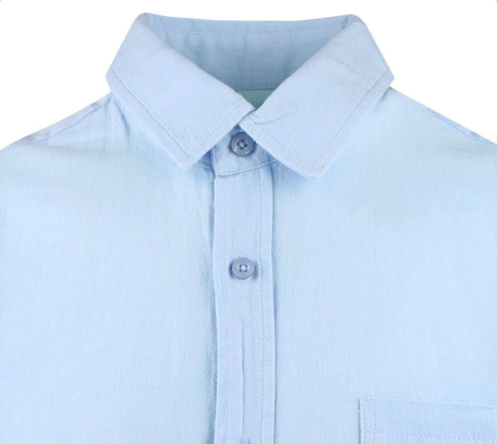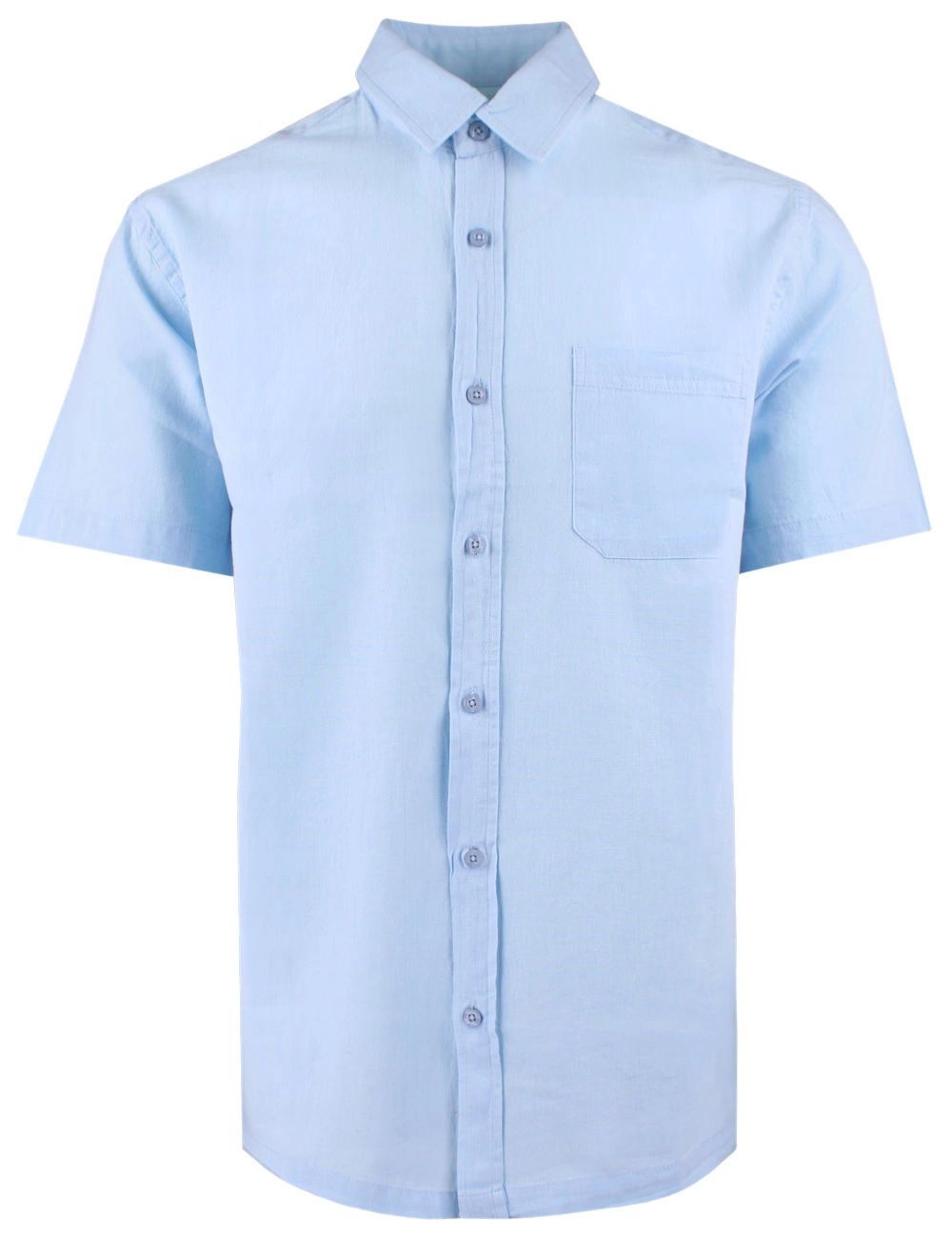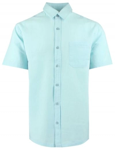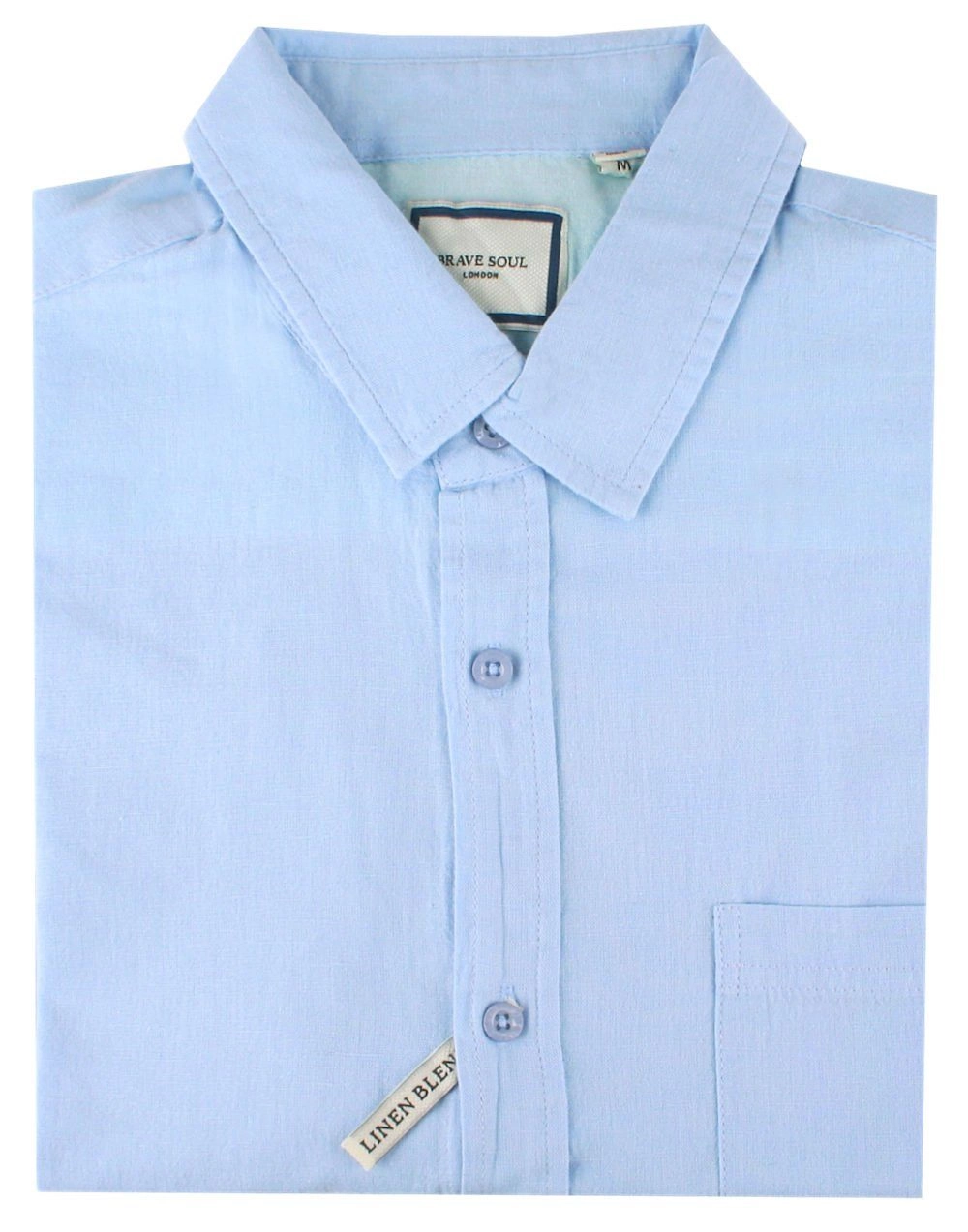 Koszula Weekendowa z Lnem, Krótki Rękaw - Brave Soul - Błękitna