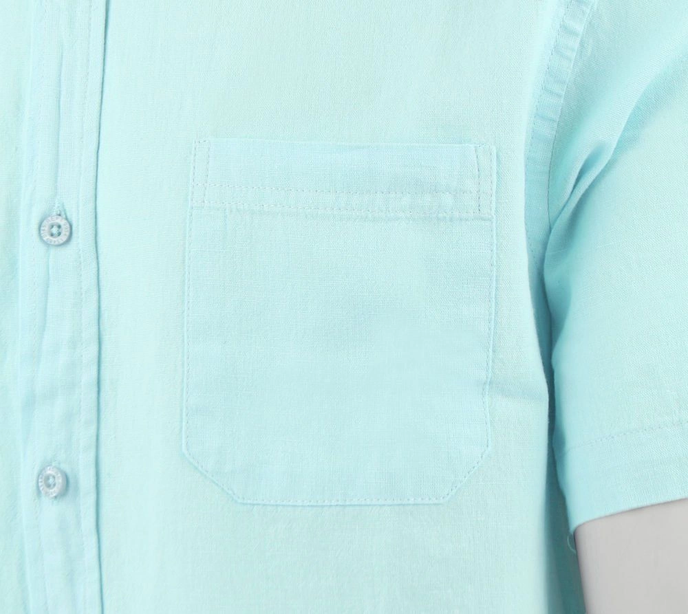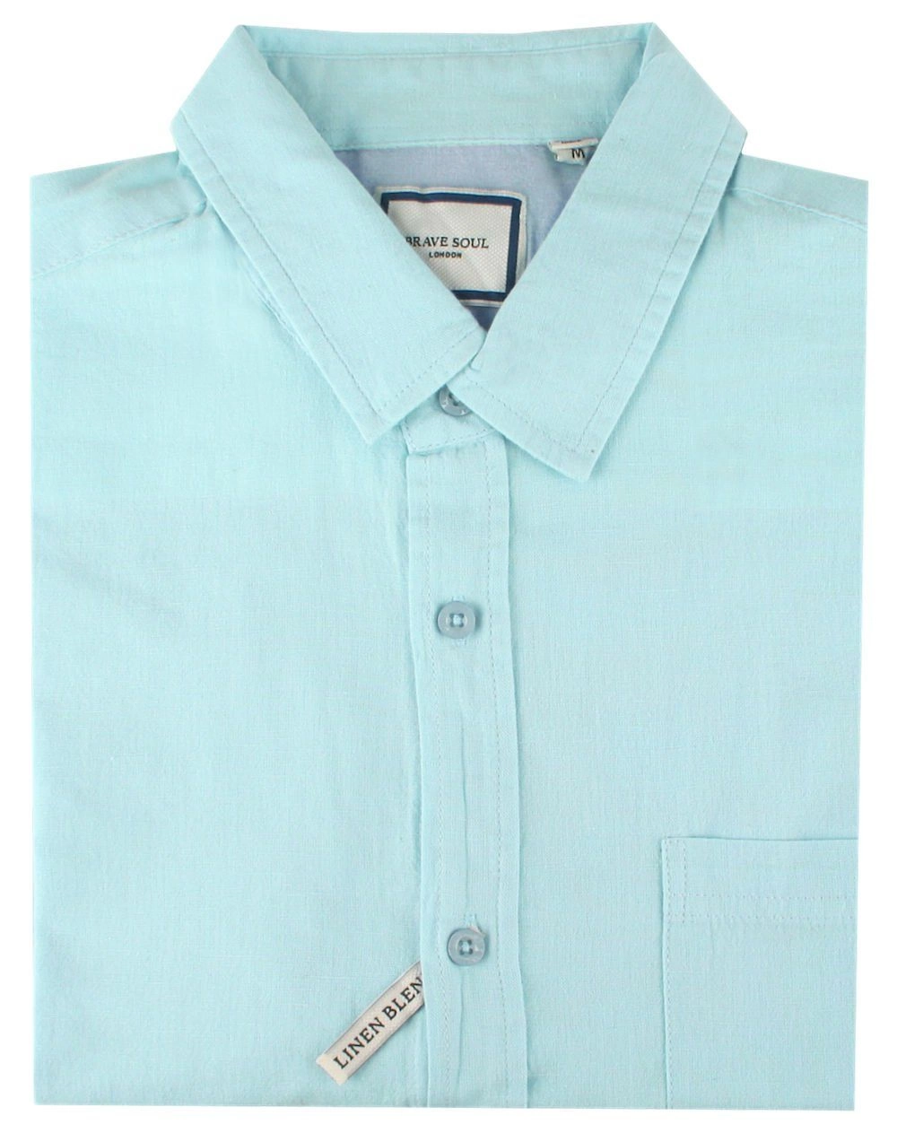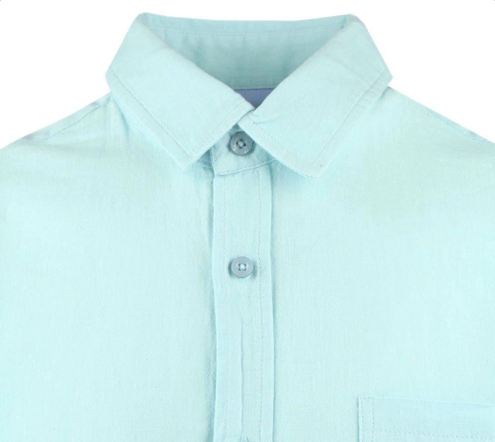 Koszula Weekendowa z Lnem, Krótki Rękaw - Brave Soul - Miętowy-Niebieski