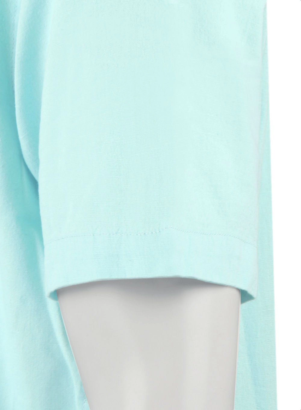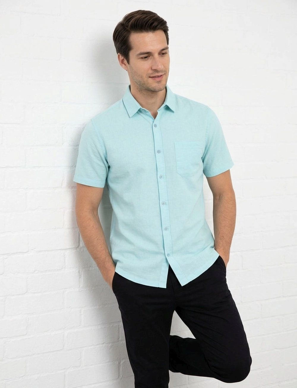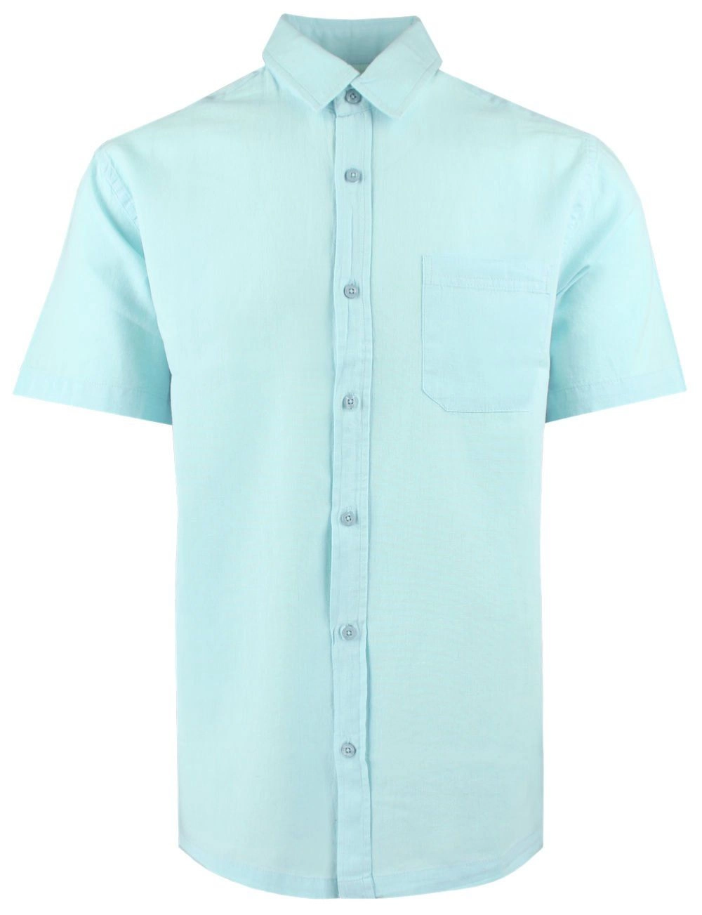 Koszula Weekendowa z Lnem, Krótki Rękaw - Brave Soul - Miętowy-Niebieski