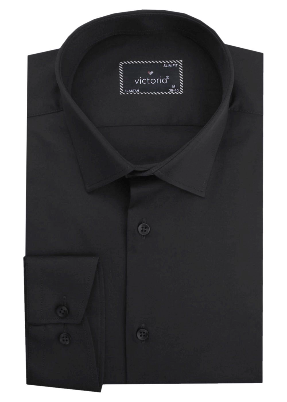 Koszula Wizytowa, Długi Rękaw, Czarna, Taliowana, SLIM - Victorio