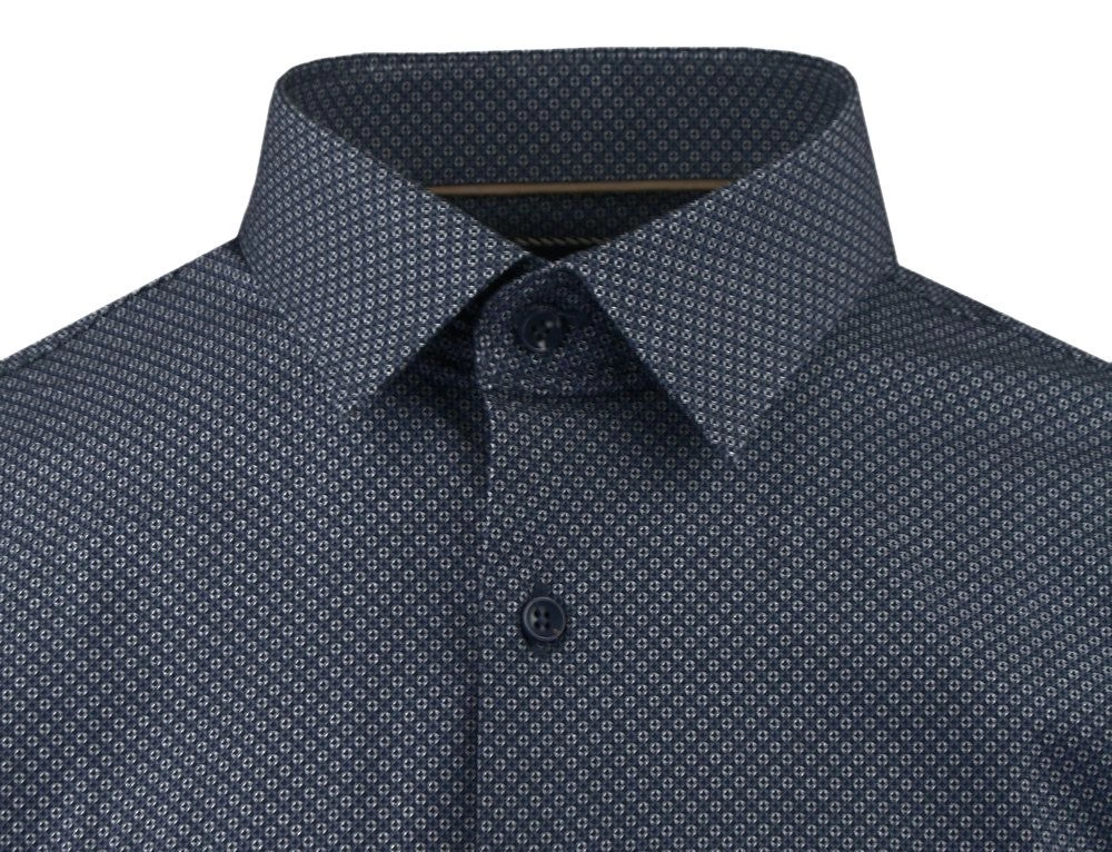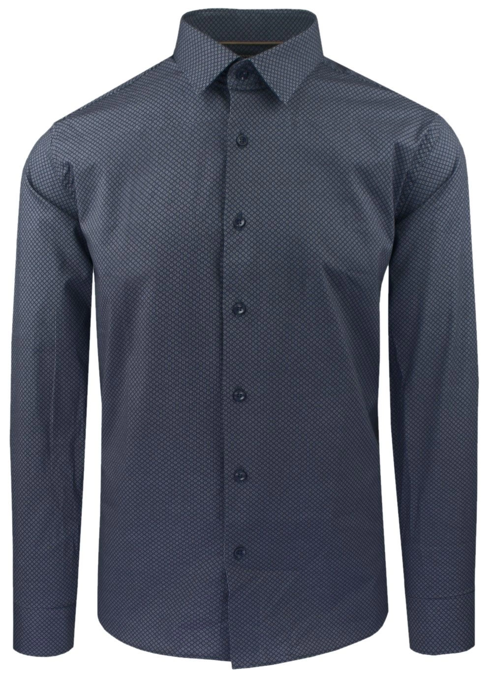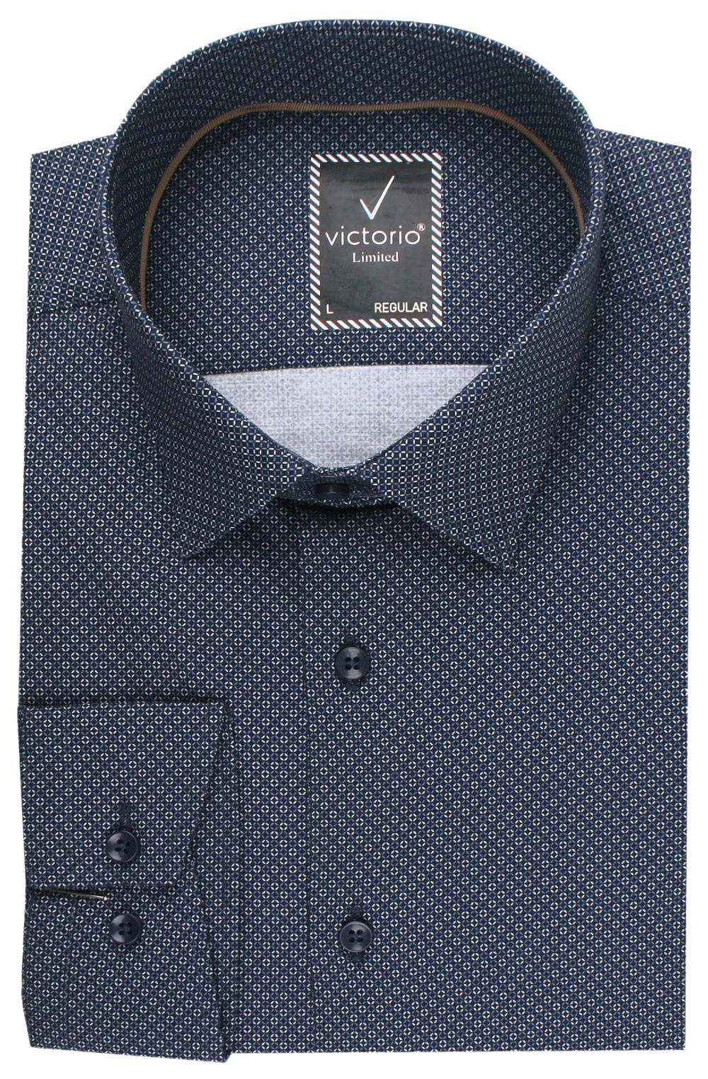 Koszula Wizytowa z Prostym Krojem - Victorio - Granatowa w Drobny Wzór