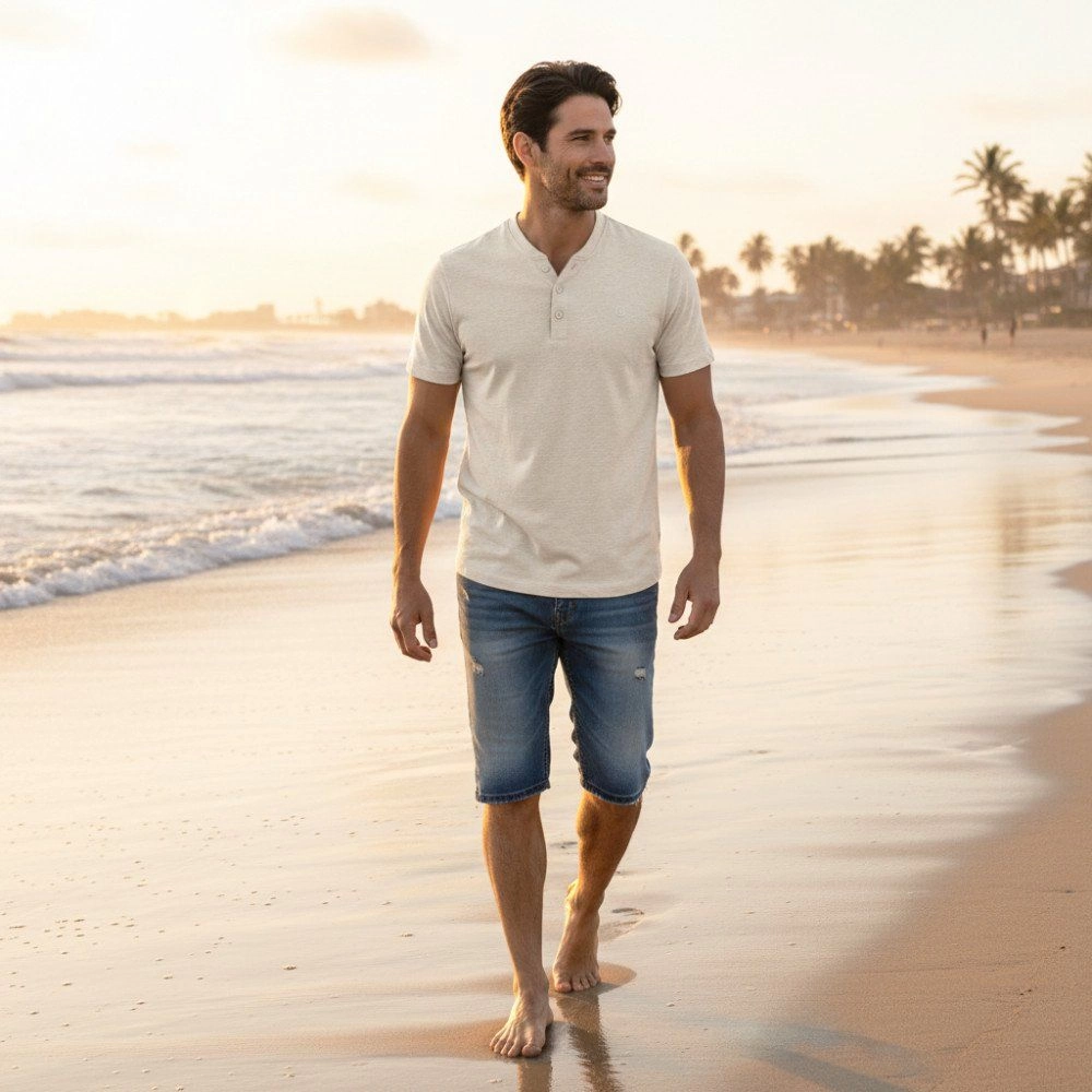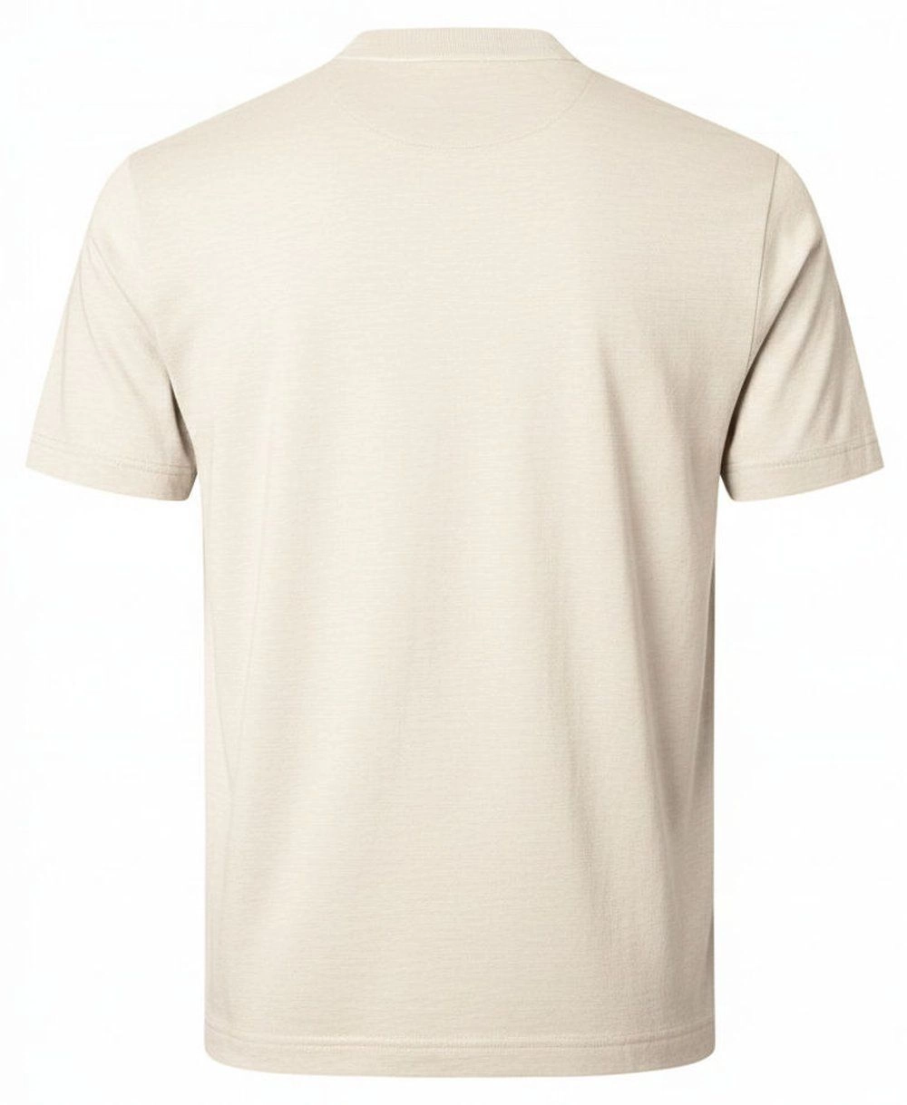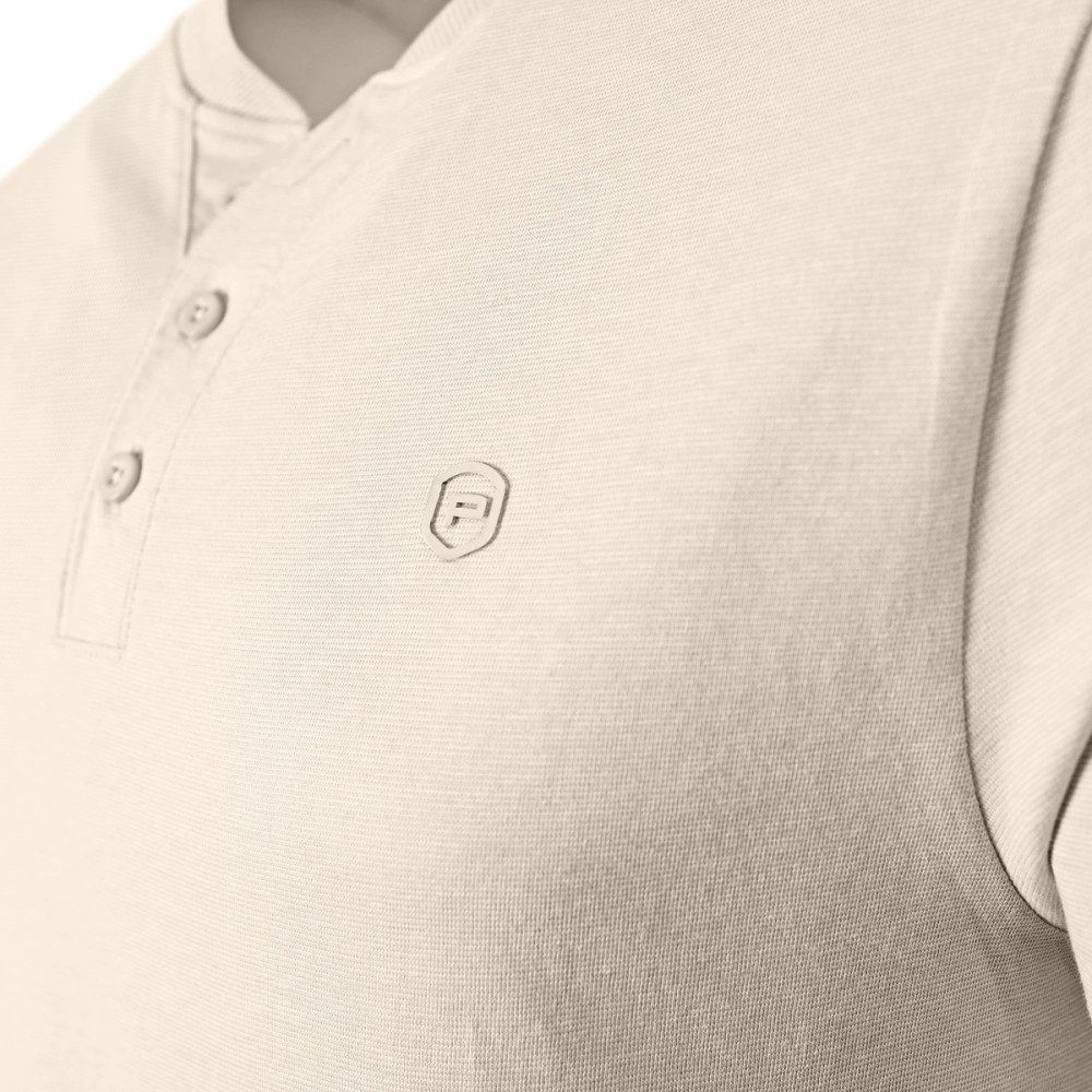 Koszulka Męska (T-Shirt) na Stójce z Guzikami - Pako Jeans - Jasny Beż