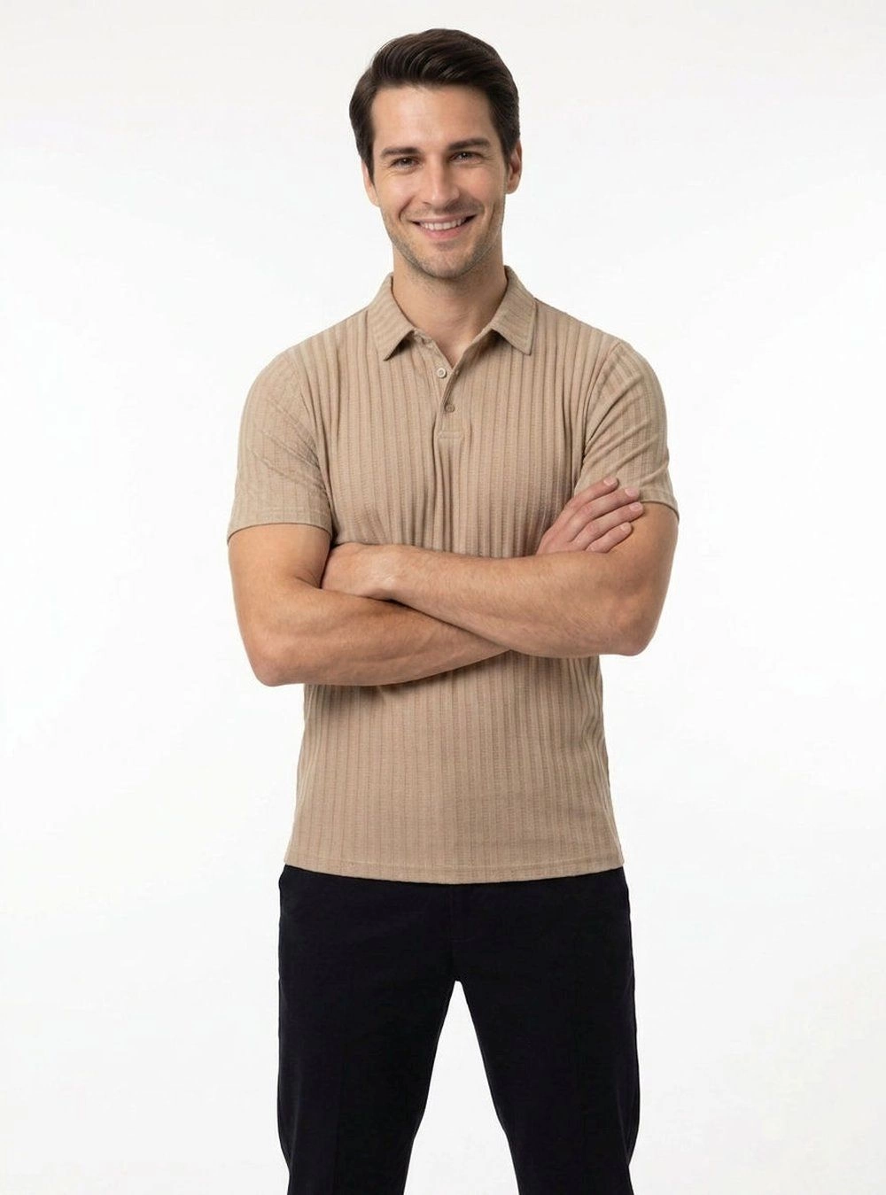Koszulka Polo, Męska, z Dzianiny - Brave Soul - Ciepły Beż