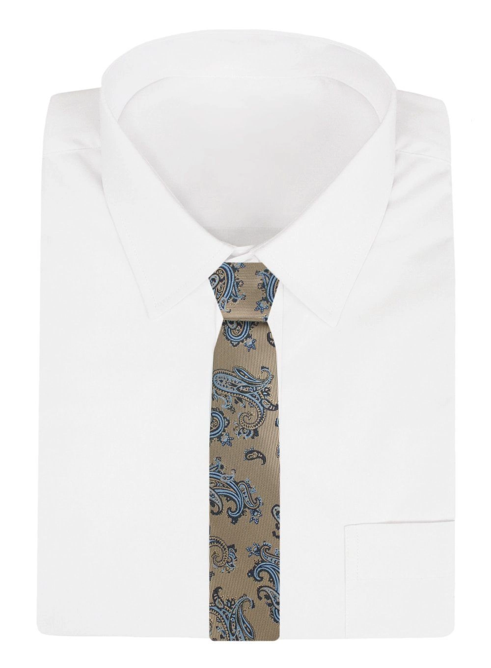 Krawat Męski - Angelo di Monti - Beżowy w Duże Paisley