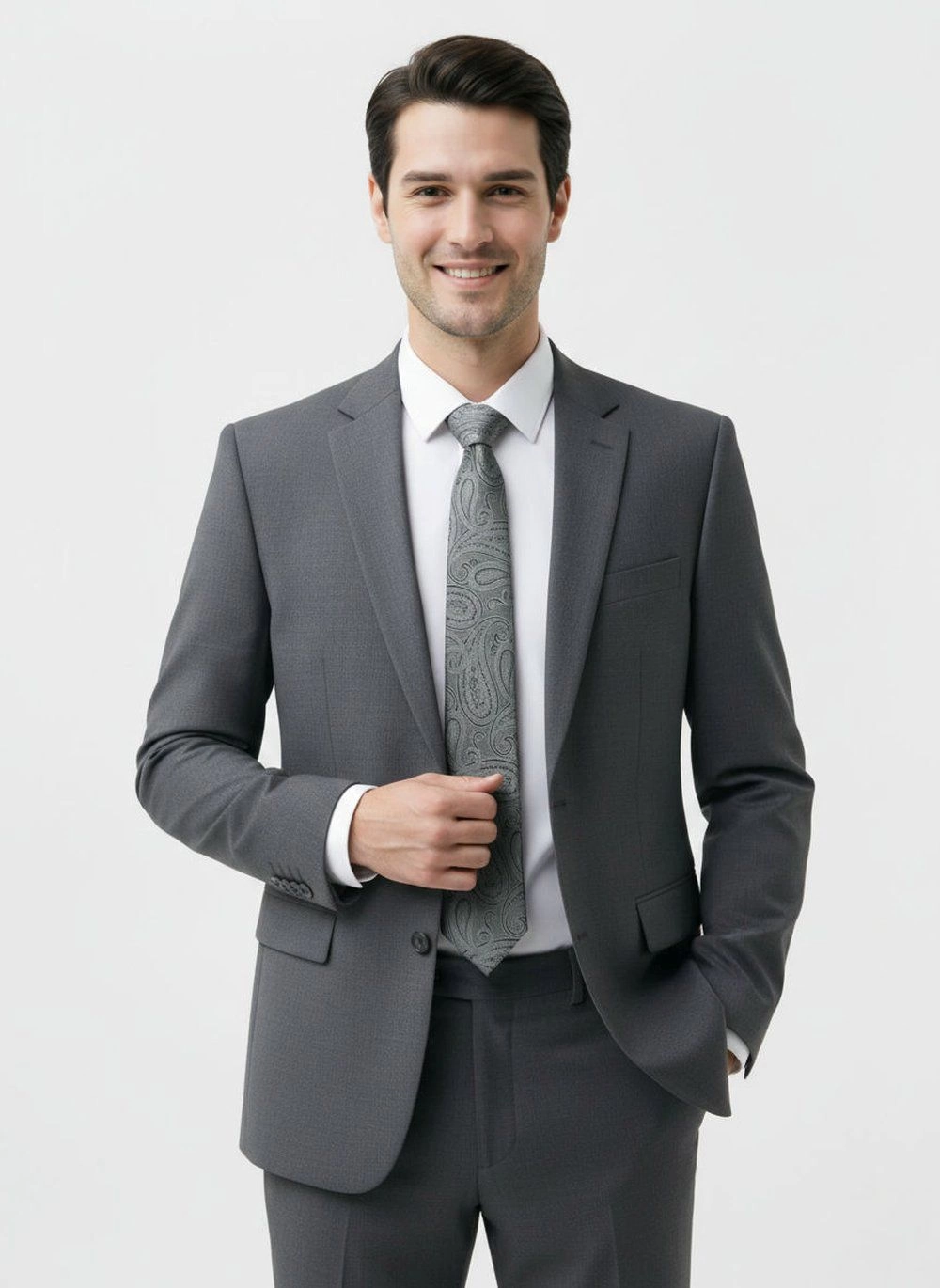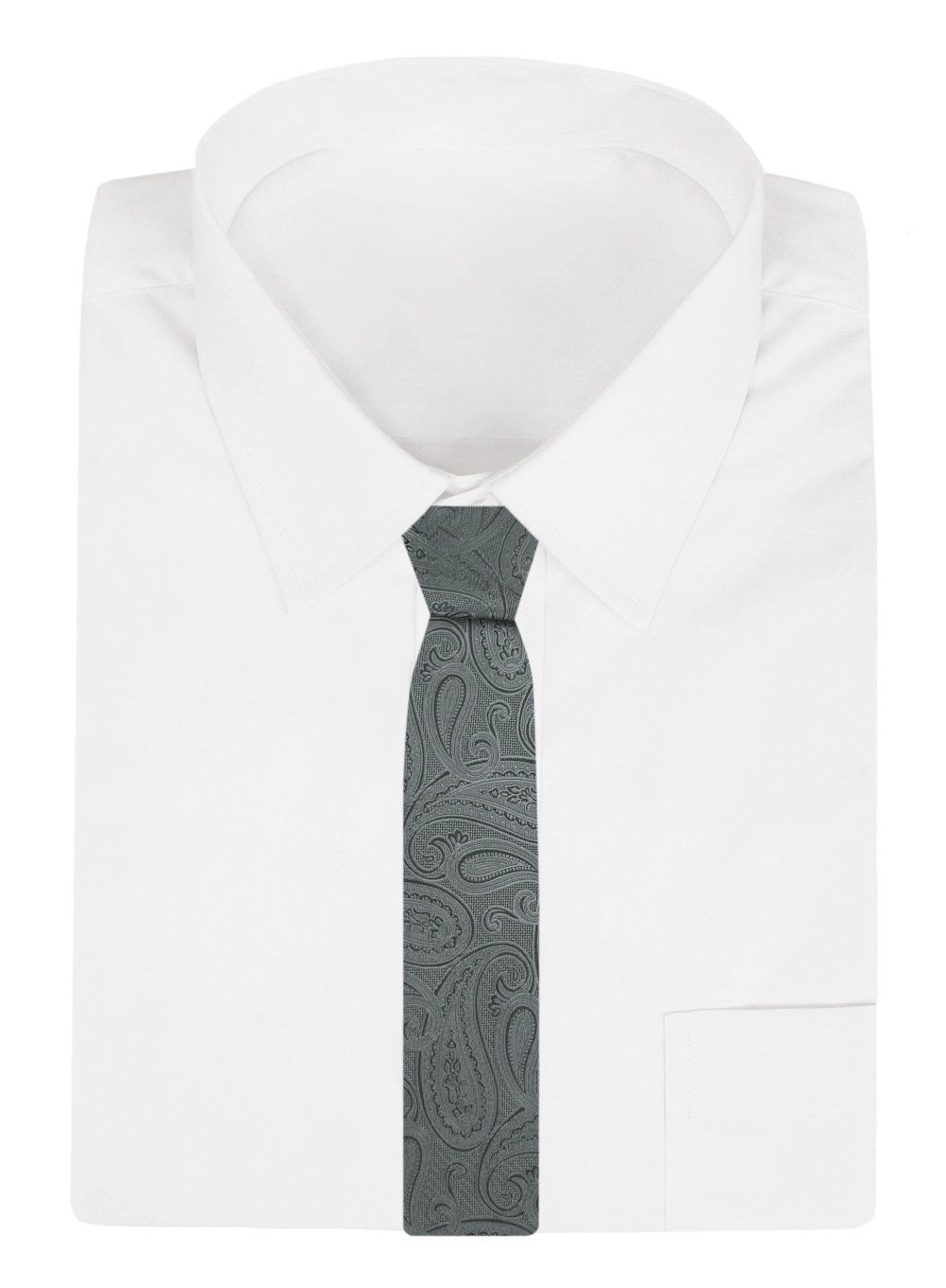 Krawat Męski - Angelo di Monti - Stalowy ze Wzorem Paisley