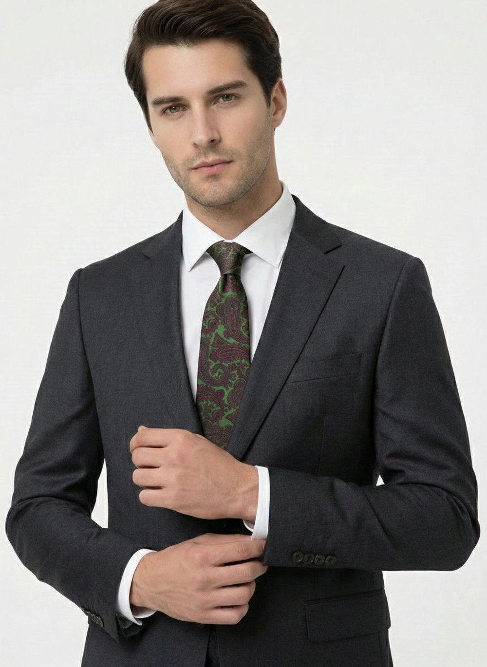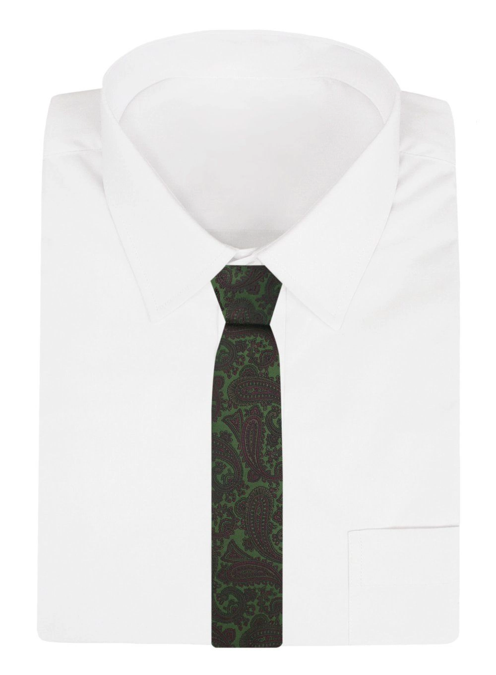 Krawat Męski - Angelo di Monti - Zielony, Duży Wzór Paisley