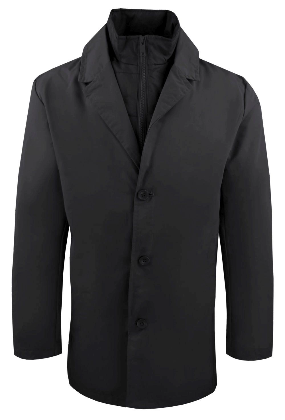Krótki, Męski Płaszcz Przejściowy z Wysokim Kołnierzem - Brave Soul - Czarny