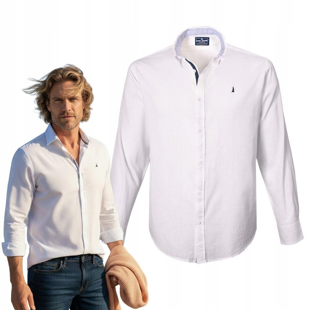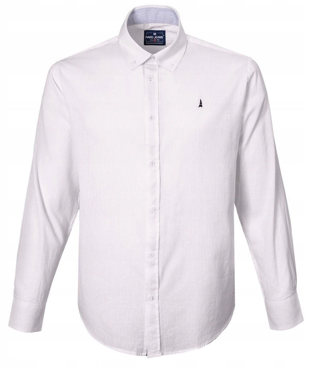 Lekka, Bawełniana Koszula Męska - Pako Jeans - Prosty Krój, Biała
