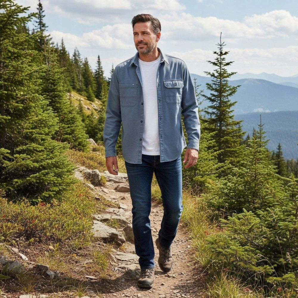 Lekka Kurtka o Kroju Koszuli Wierzchniej - Pako Jeans - Stalowa Niebieska