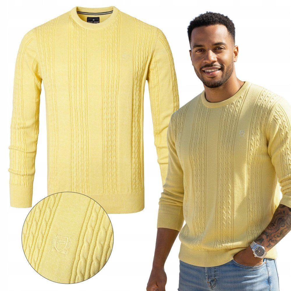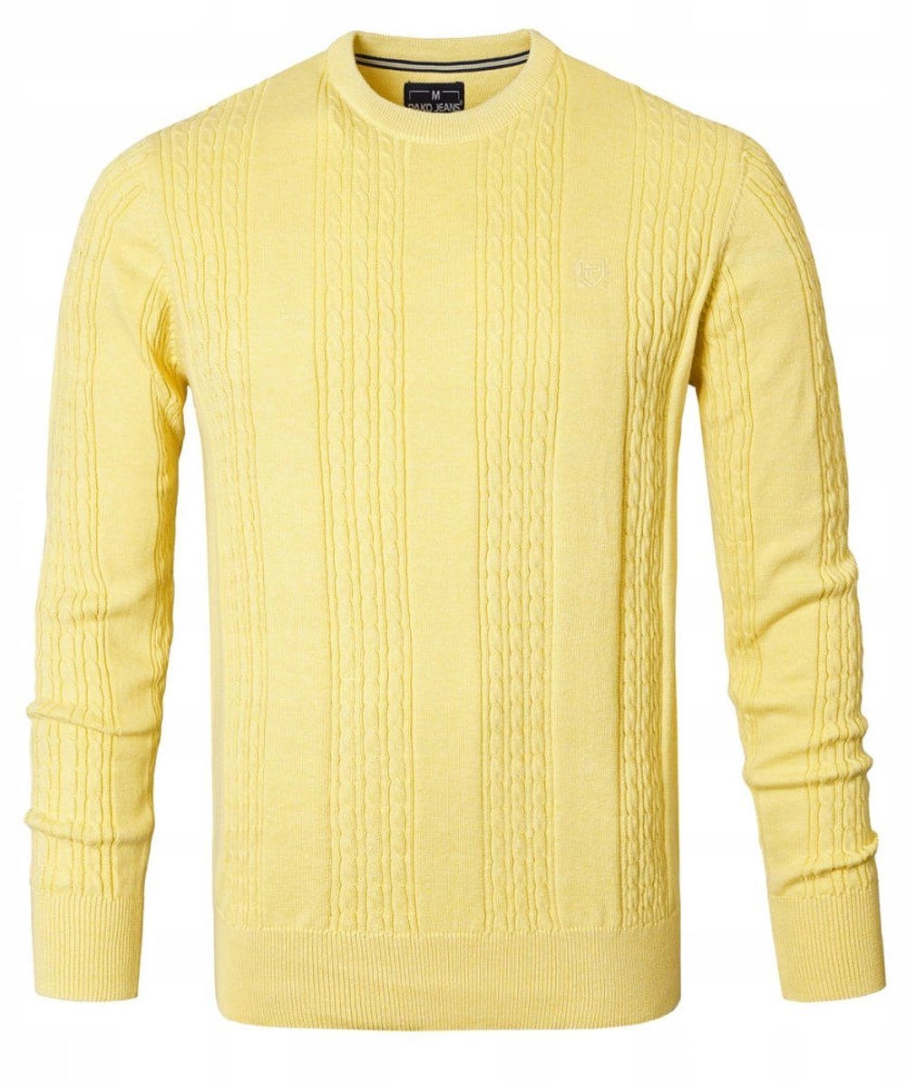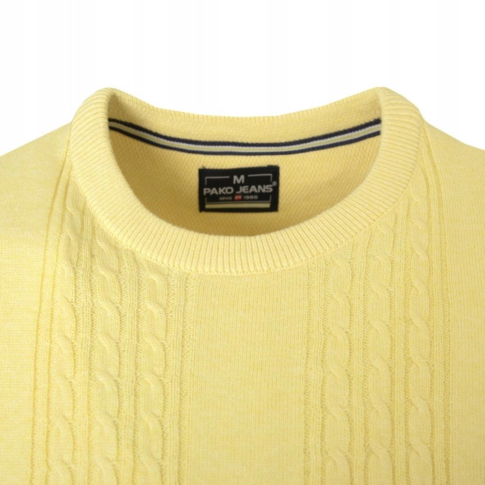 Lekki, Męski Sweter Bawełniany - Pako Jeans - Żółty, Faktura Materiału