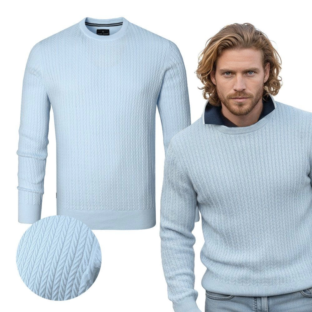 Lekki (Przejściowy) Sweter Męski z Bawełnianej Dzianiny - Pako Jeans - Błękitny