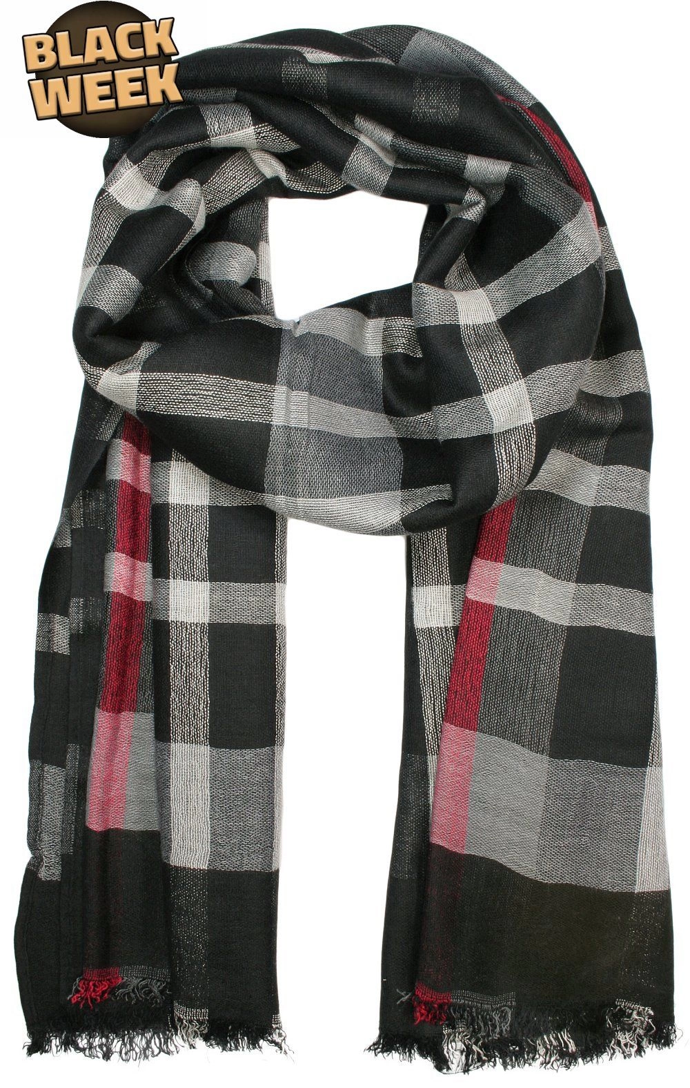 Lekki Szalik Wiosenno-Jesienny, Czarno-Popielaty w Kratę, Męski, Przejściowy -TEER