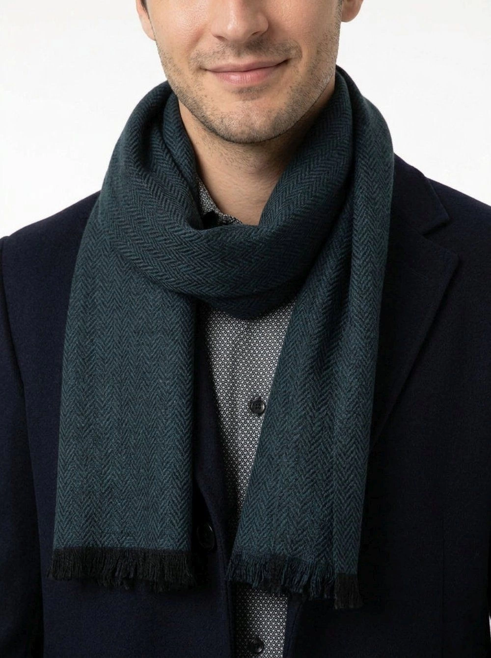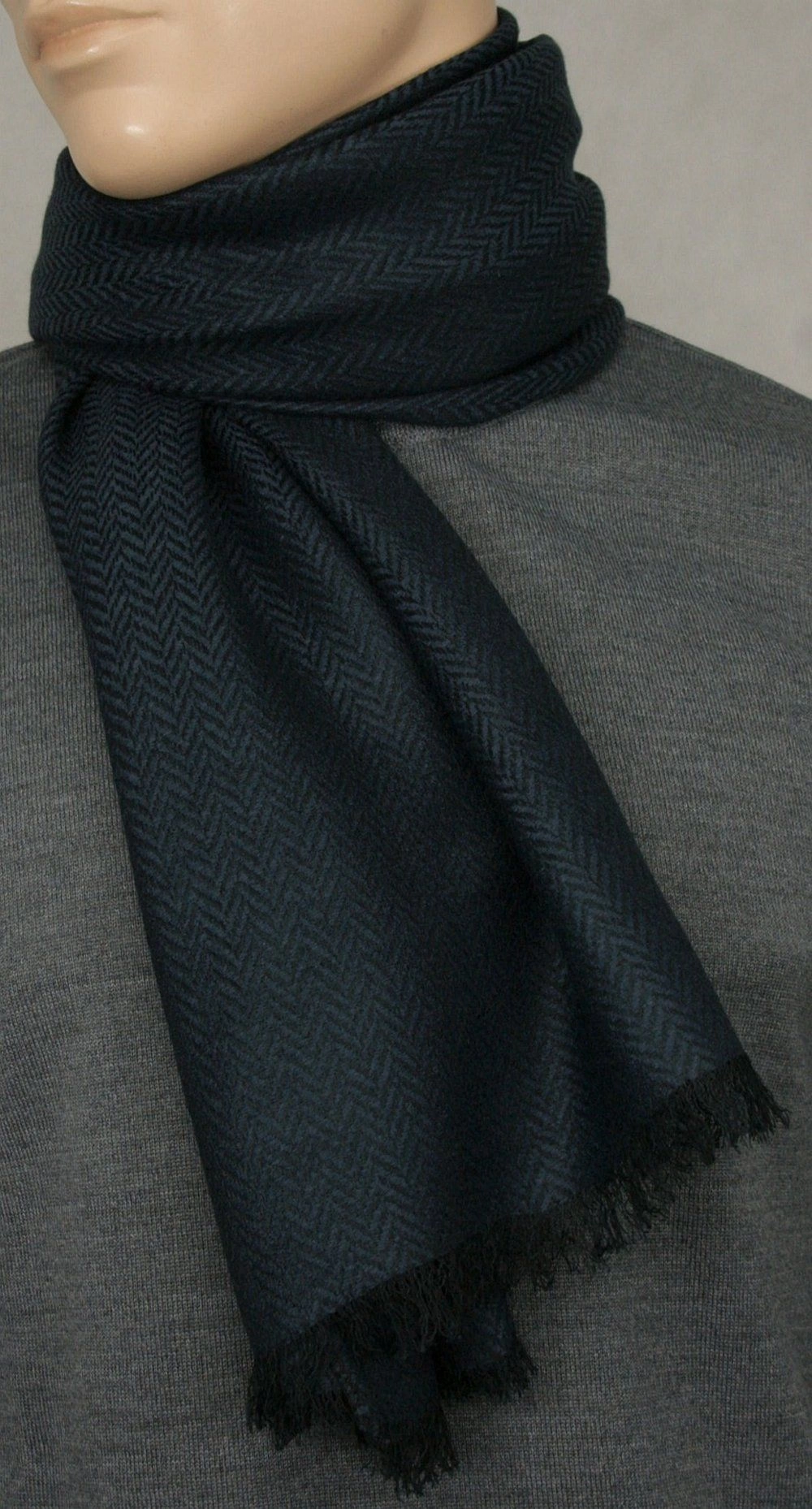 Lekki Szalik Wiosenno-Jesienny - Teer - Granatowa Jodełka