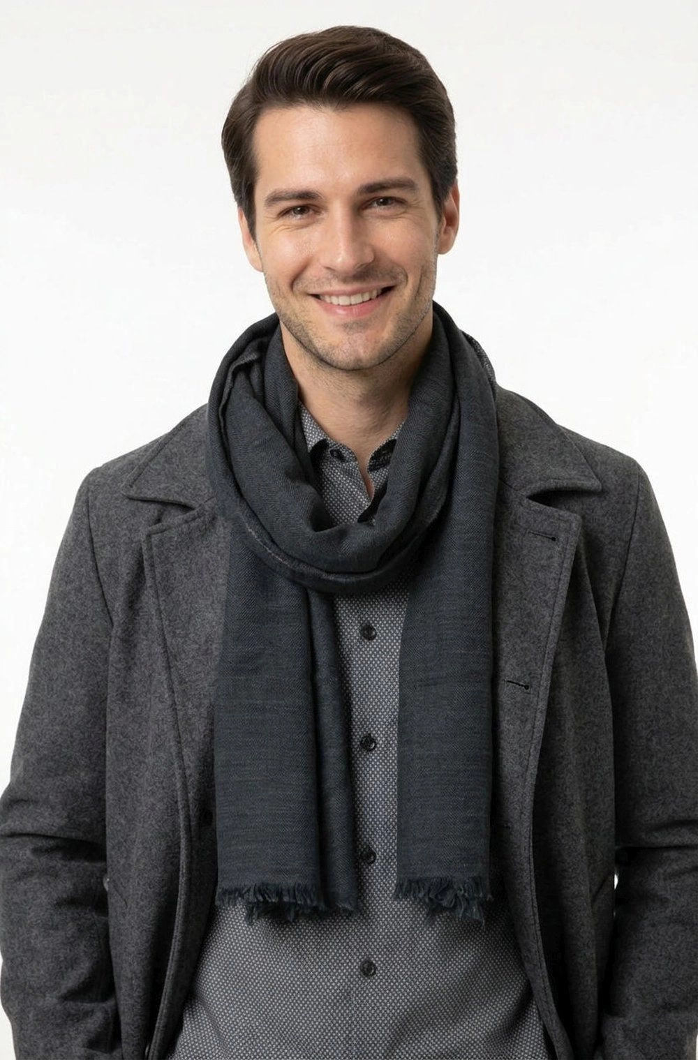 Lekki szalik idealny na przejściową pogodę. Doskonale nadaje się na wiosenne spacery, jak i na jesienną pluchę. Szaliki zachowują stonowaną kolorystykę. Są świetnym uzupełnieniem zarówno eleganckiego stroju, jak i miejskiego stylu. Materiał: 100% poliester. Wymiary: dł. ok. 208 cm, szer. ok. 70 cm.