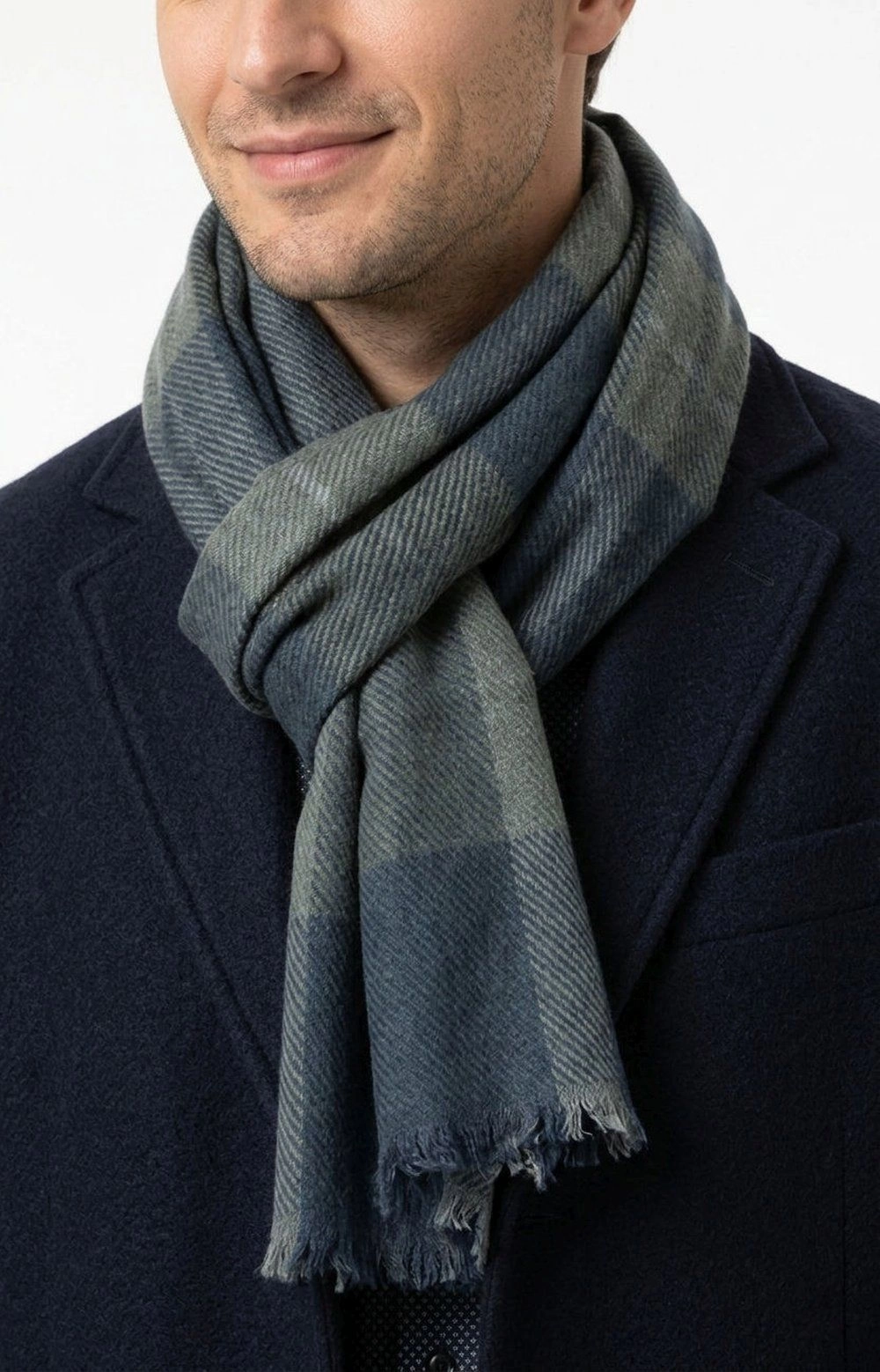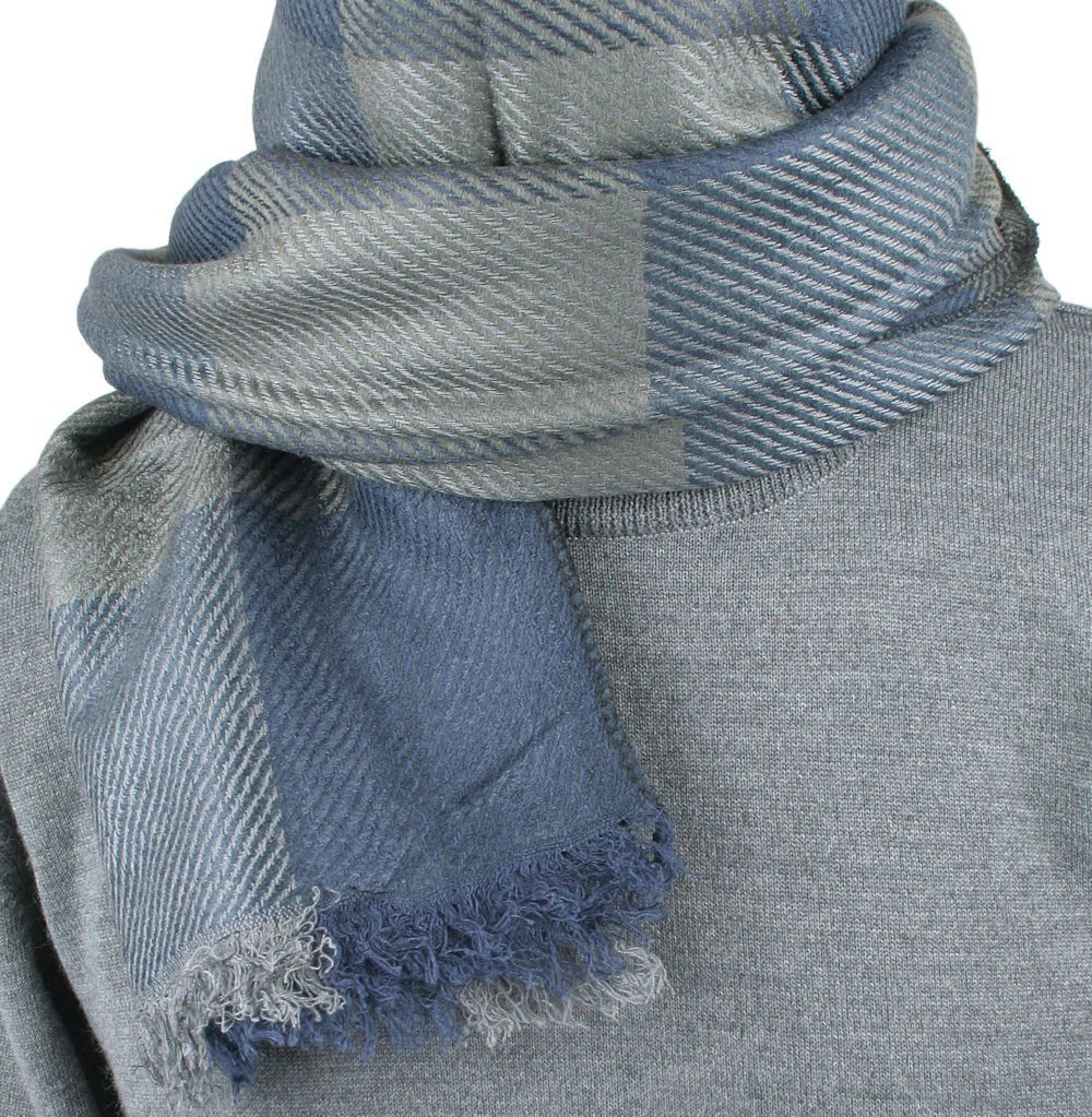Lekki Szalik Wiosenno-Jesienny - Teer - Niebiesko-Szara Krata