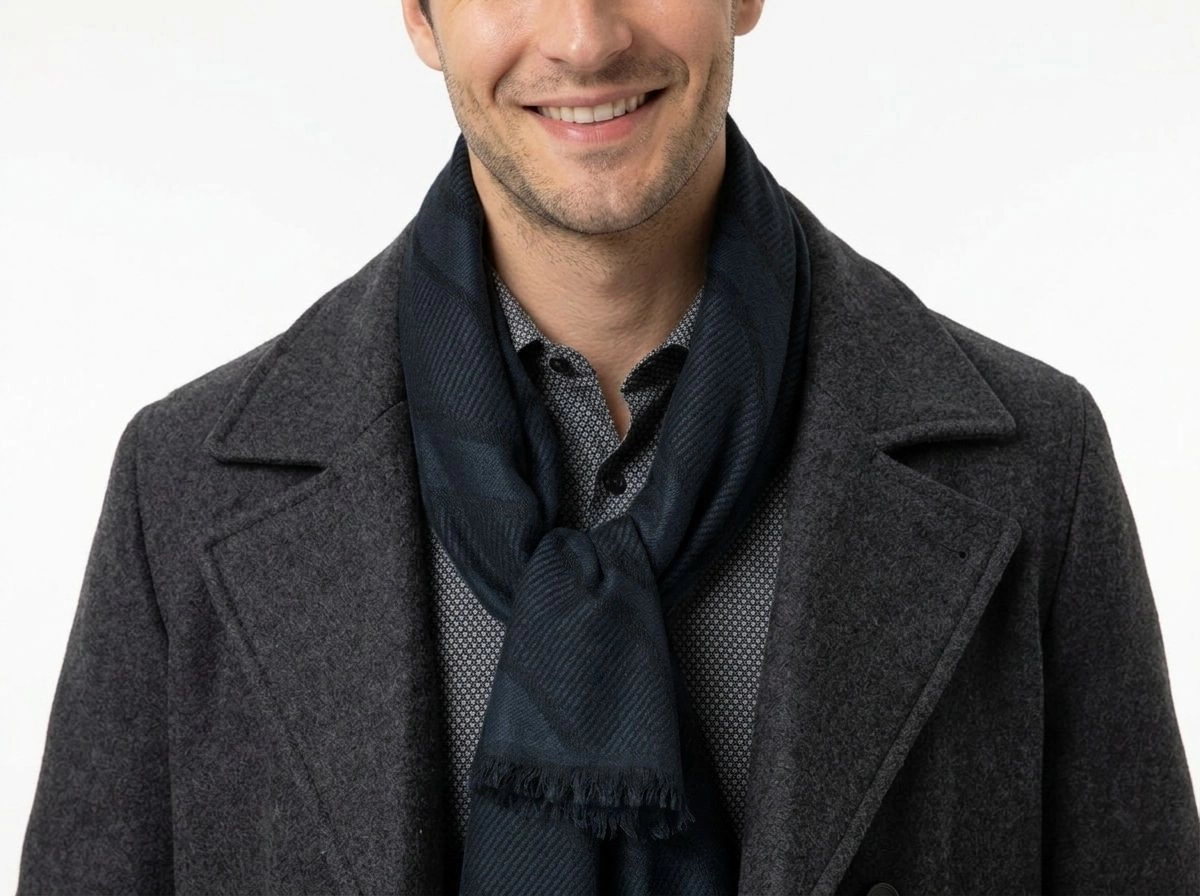 Lekki Szalik Wiosenno-Jesienny - Teer - Nieregularny Granatowy Wzór