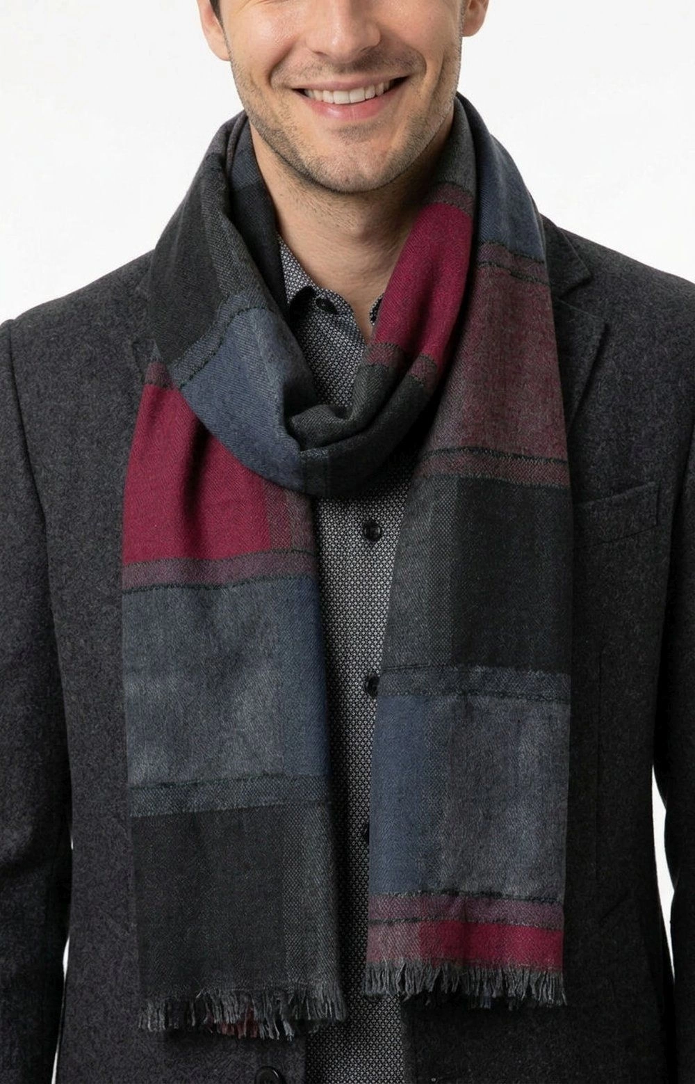 Lekki Szalik Wiosenno-Jesienny - Teer - Stonowana Kolorystyka, Duża Krata