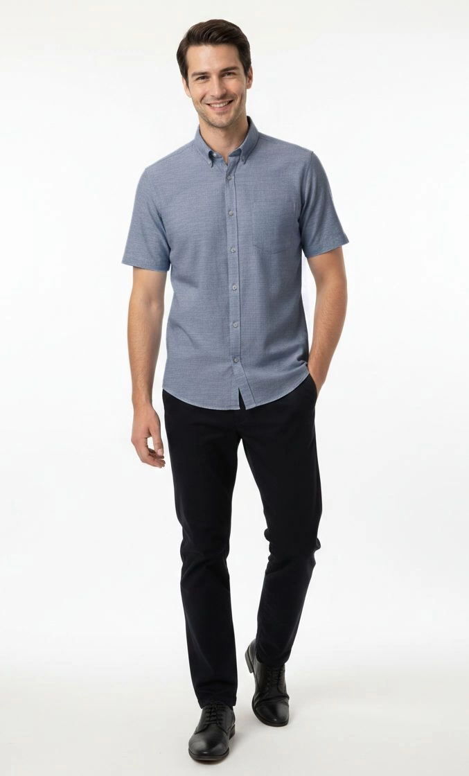 Letnia Koszula Weekendowa - Brave Soul - Niebieski Melanż