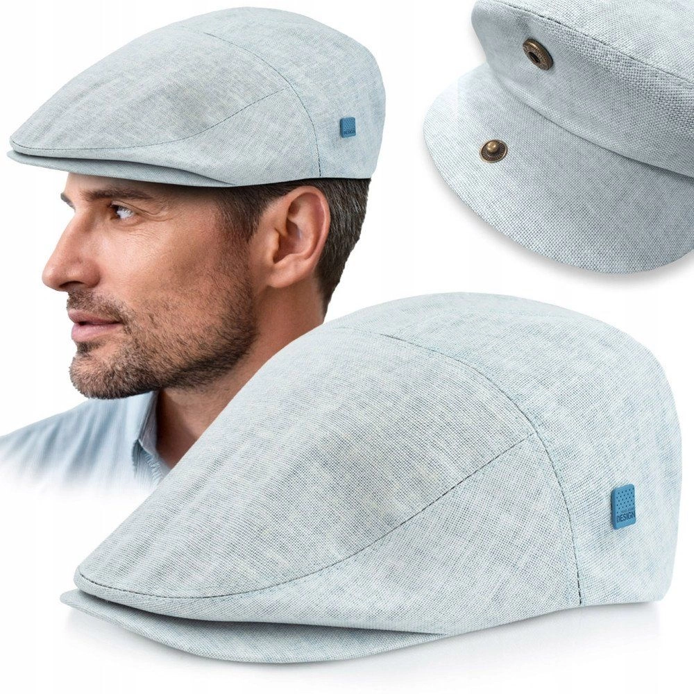 Lniany Męski Kaszkiet - Lekki i Przewiewny - Pako Jeans - Pudrowy Niebieski