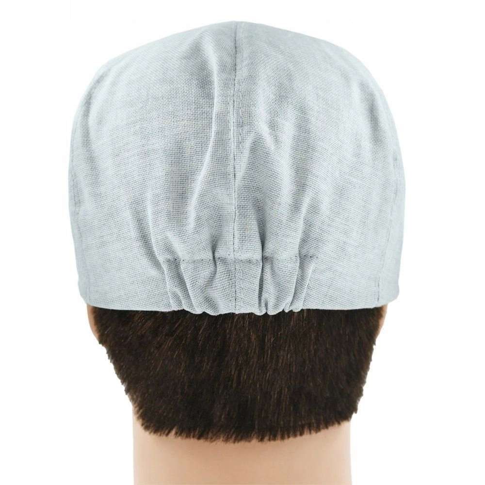 Lekki i przewiewny kaszkiet wykonany z lnianej tkaniny. Będzie on stanowił doskonałą ochronę przed słońcem, dając delikatny przewiew. Model dzięki wszytej z tyłu gumce idealnie dopasowuje się do głowy. Regulacja ta sprawia, że kaszkiet doskonale pasuje dla Panów, którzy posiadają obwód głowy mieszczący się w wymiarze 56cm-60cm.