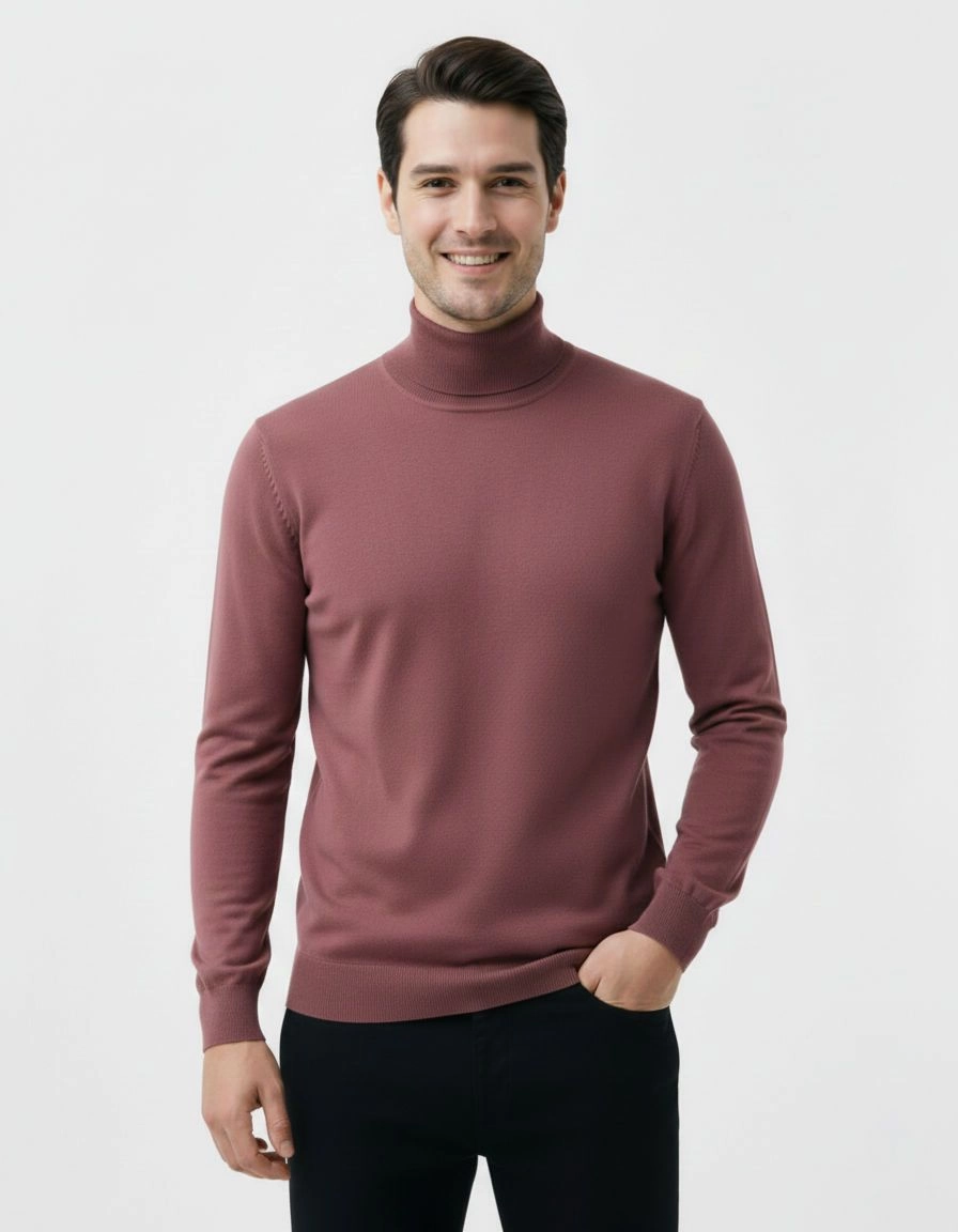Golf Łososiowy Elegancki Męski, Klasyczny, Zgaszony Różowy -Brave Soul- 100% BAWEŁNA,