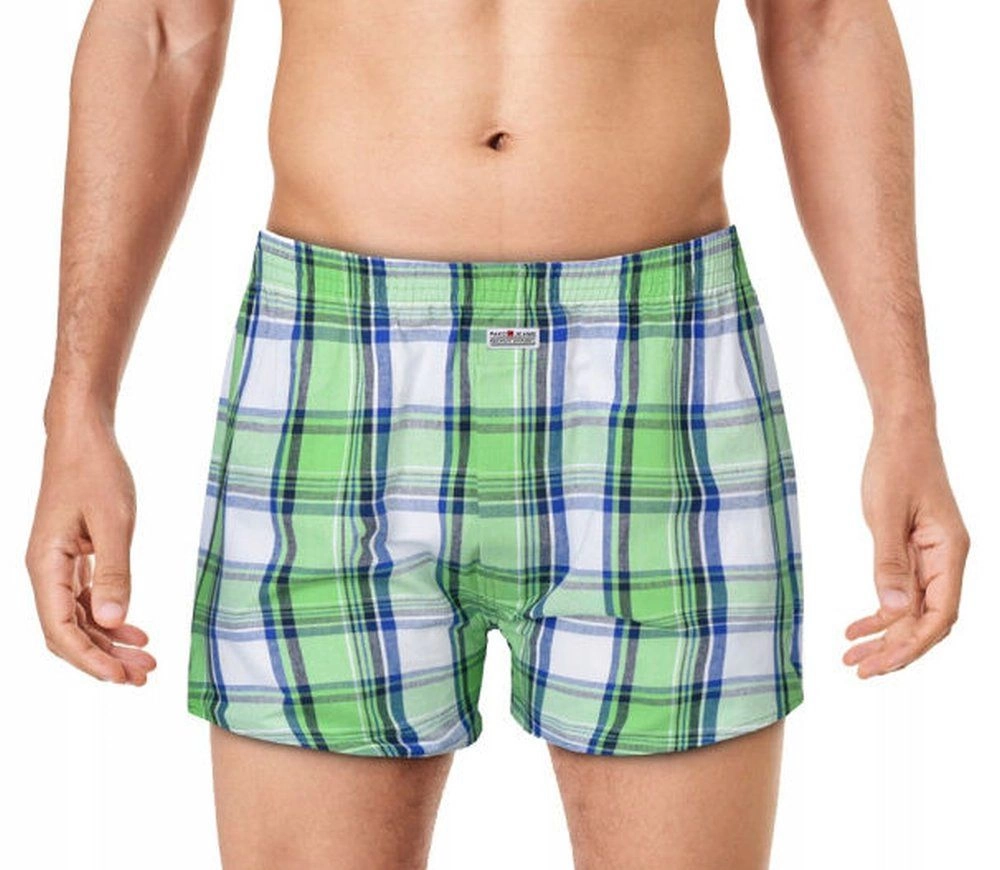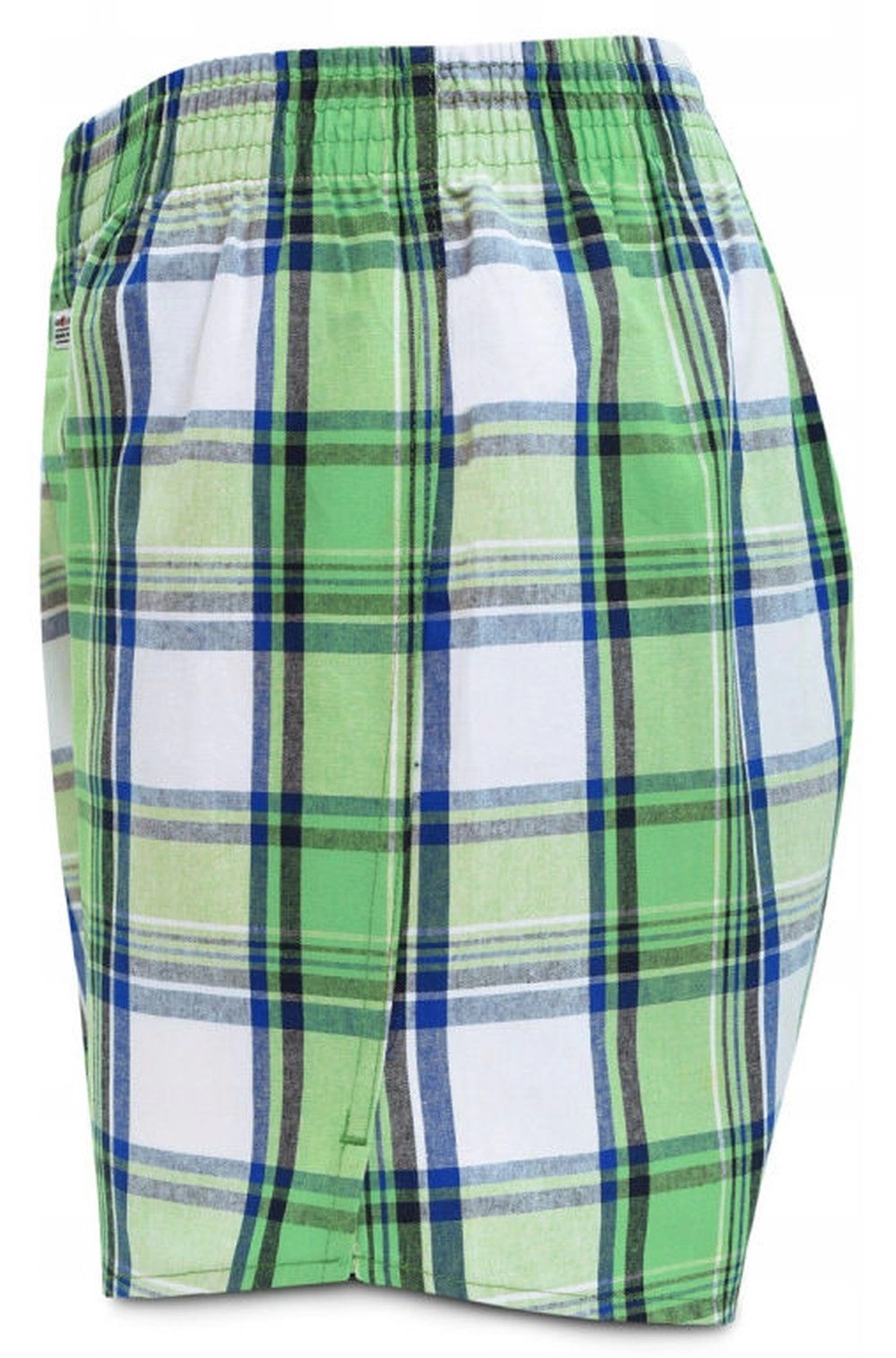 Luźne Męskie Bokserki, Bawełniane - Pako Jeans - Zielone w Kratę