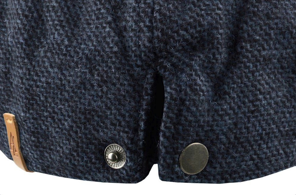 Męski kaszkiet wykonany z eleganckiej i miękkiej tkaniny z dodatkiem szlachetnej wełny. Od wewnątrz ocieplony podszewką. Dobrze sprawdzi się podczas tzw. przejściowej pogody która dominuje wiosną, jesienią oraz coraz częściej nawet w zimie. Rozmiar jest uniwersalny dzięki zatrzaskom (napom), które pozwalają regulować obwód kaszkietu (trzy stopnie regulacji). Najlepiej będzie pasował na panów o obwodzie głowy 56 +/- 2 cm.