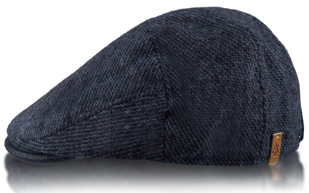 Melanżowy, Ocieplany Kaszkiet Męski z Wełną - Alties - Granatowy