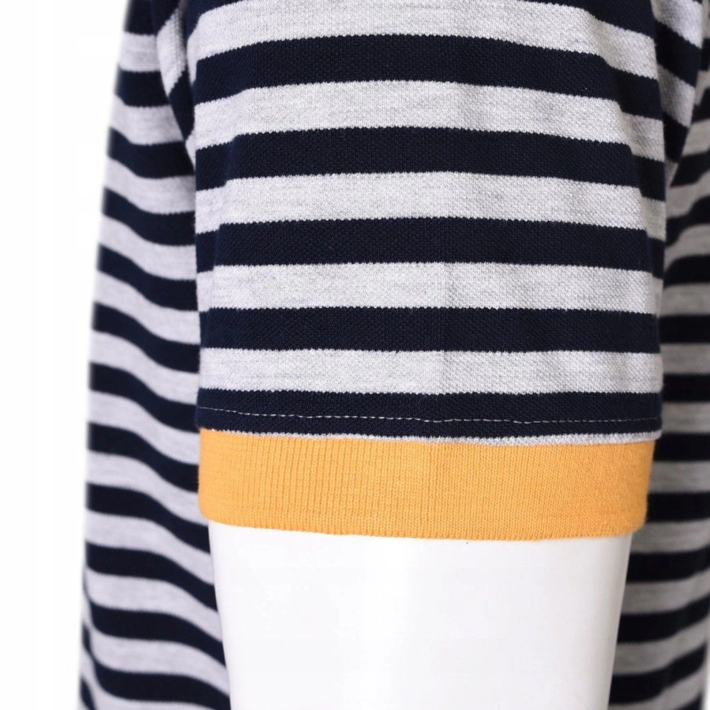 Męska, Bawełniana Koszulka Polo - Pako Jeans - Żółte Akcenty, Paski