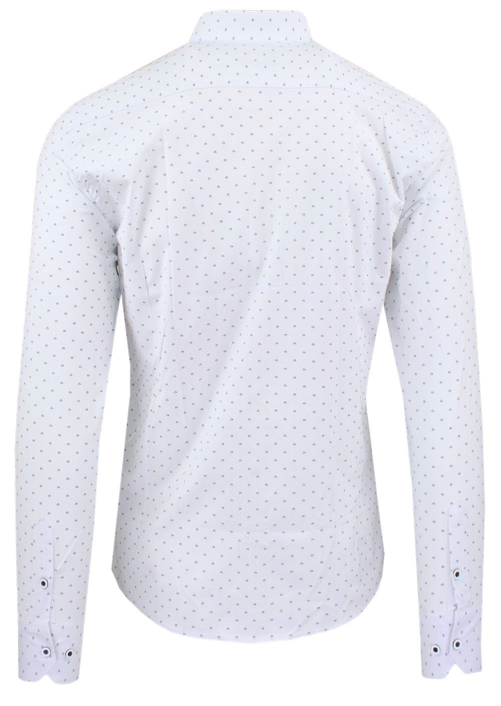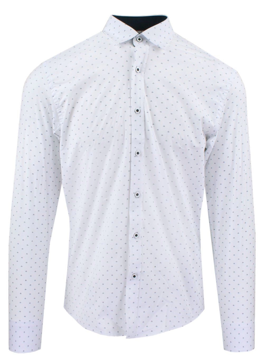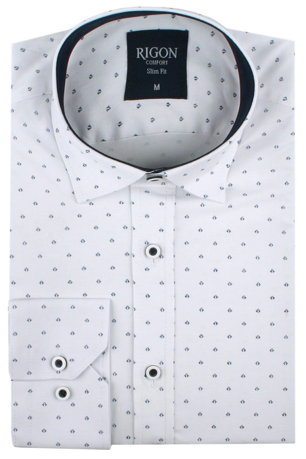 Męska Koszula, Taliowana (Slim Fit) - Rigon - Biała w Drobny Wzór