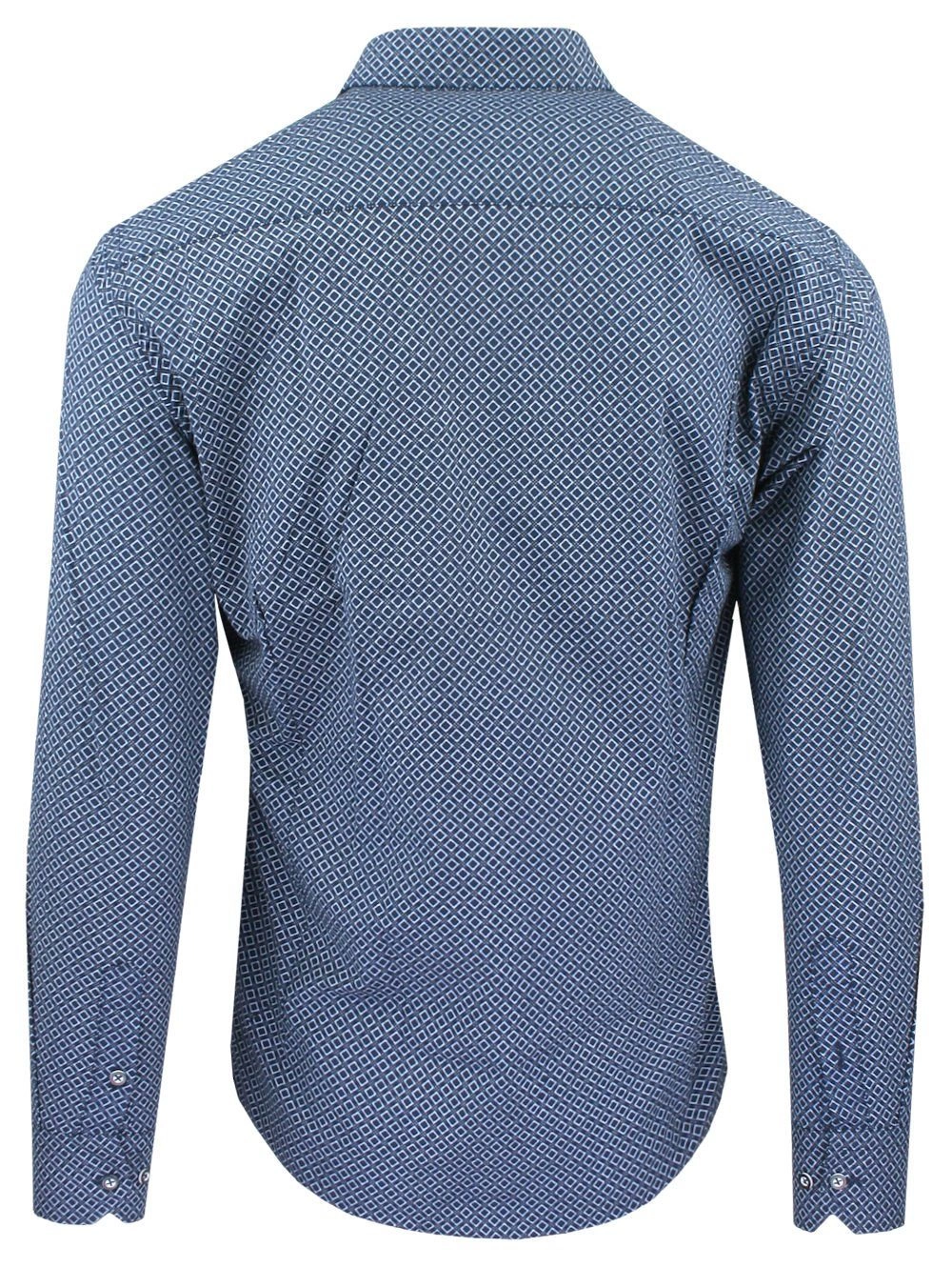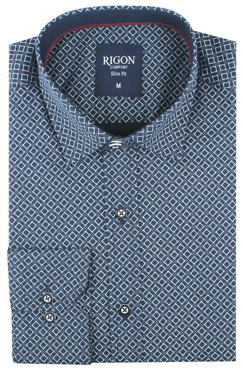 Męska Koszula, Taliowana (Slim Fit) - Rigon - Granat, Wzór
