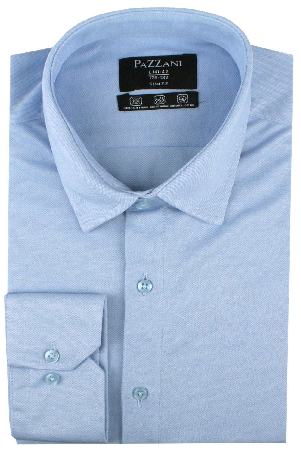Elegancka koszula o prostym kroju z elastycznej tkaniny i dzianinowym splocie. Uszyta z dbałością o detale takie jak np. kryty guzik pod kołnierzem (tzw. button-down). Mimo braku fiszbin (usztywnienia kołnierzyka) koszula chętnie wybierana jest do bardziej klasycznych stylizacji czyli z garniturem lub marynarką. Dominacja bawełny w składzie materiału gwarantuje wygodę i uczucie oddychania materiału, zaś dodatek elastanu stanowi o jej elastyczności oraz łatwości prasowania.