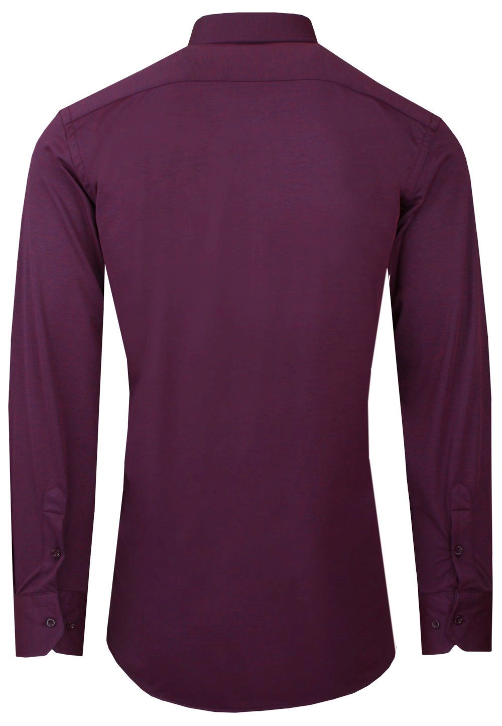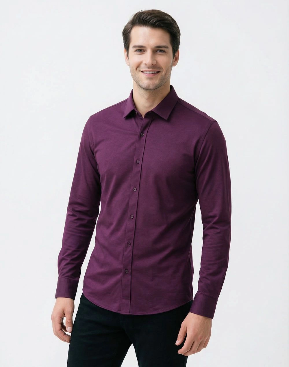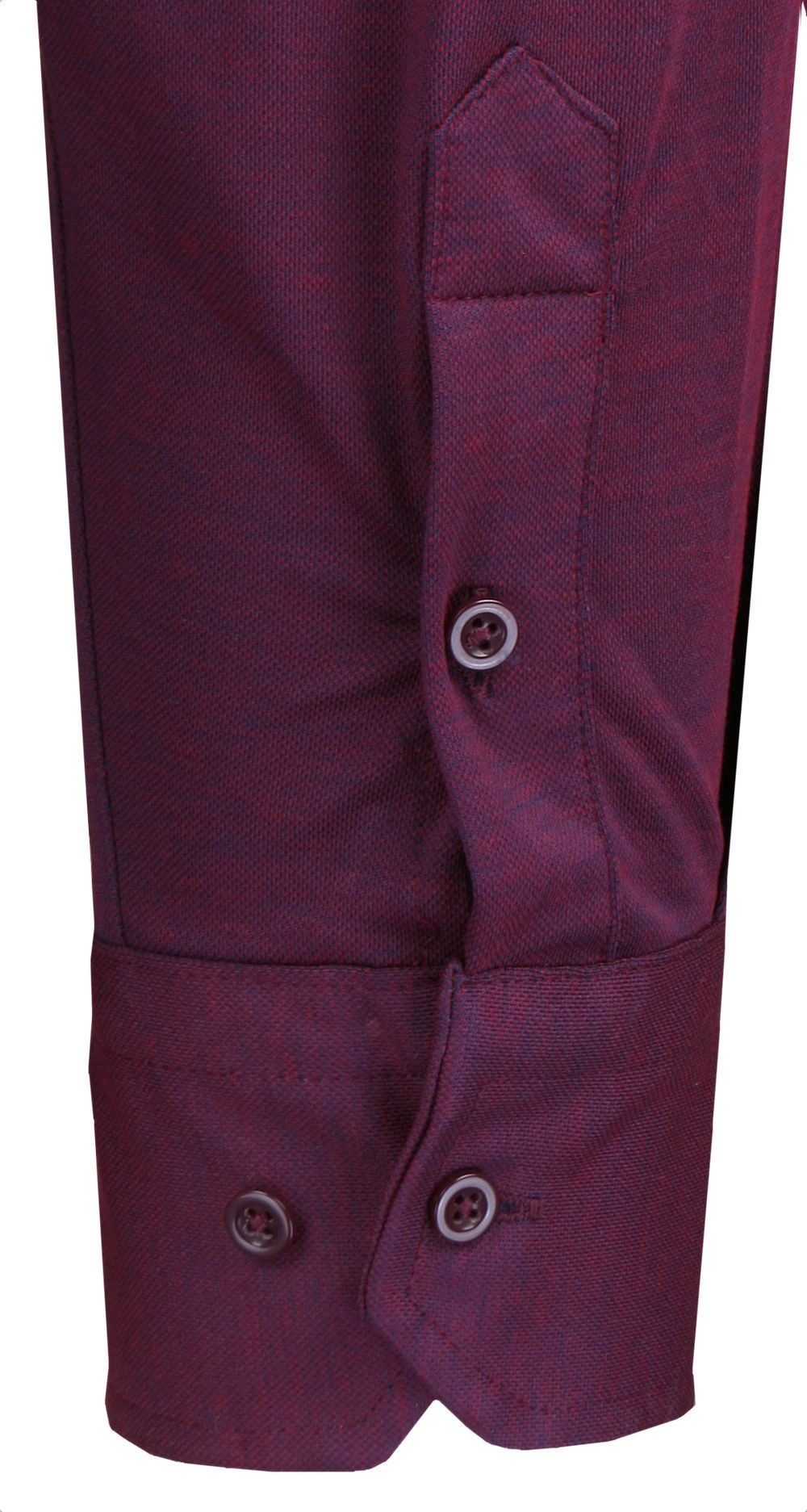 Męska Koszula z Dzianinowej Tkaniny - Krój Taliowany - Bordo