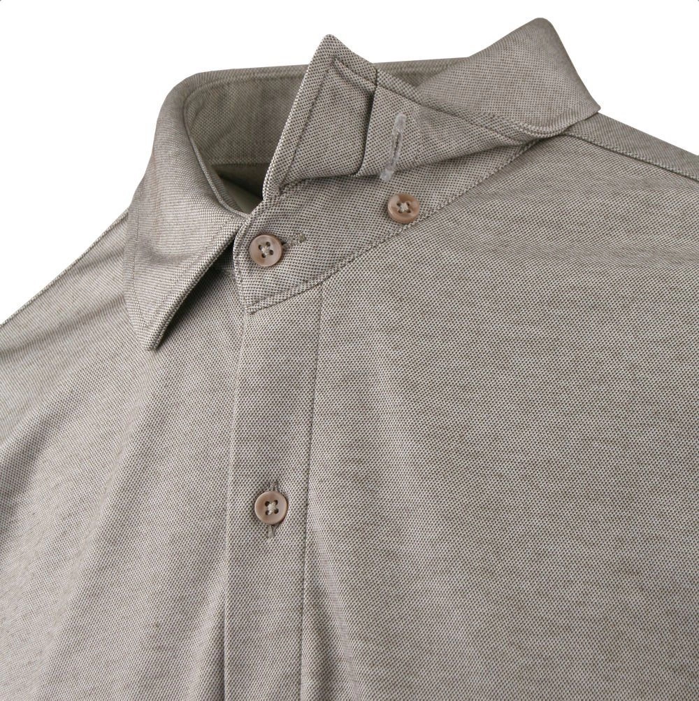 Elegancka koszula o prostym kroju z elastycznej tkaniny i dzianinowym splocie. Uszyta z dbałością o detale takie jak np. kryty guzik pod kołnierzem (tzw. button-down). Mimo braku fiszbin (usztywnienia kołnierzyka) koszula chętnie wybierana jest do bardziej klasycznych stylizacji czyli z garniturem lub marynarką. Dominacja bawełny w składzie materiału gwarantuje wygodę i uczucie oddychania materiału, zaś dodatek elastanu stanowi o jej elastyczności oraz łatwości prasowania.