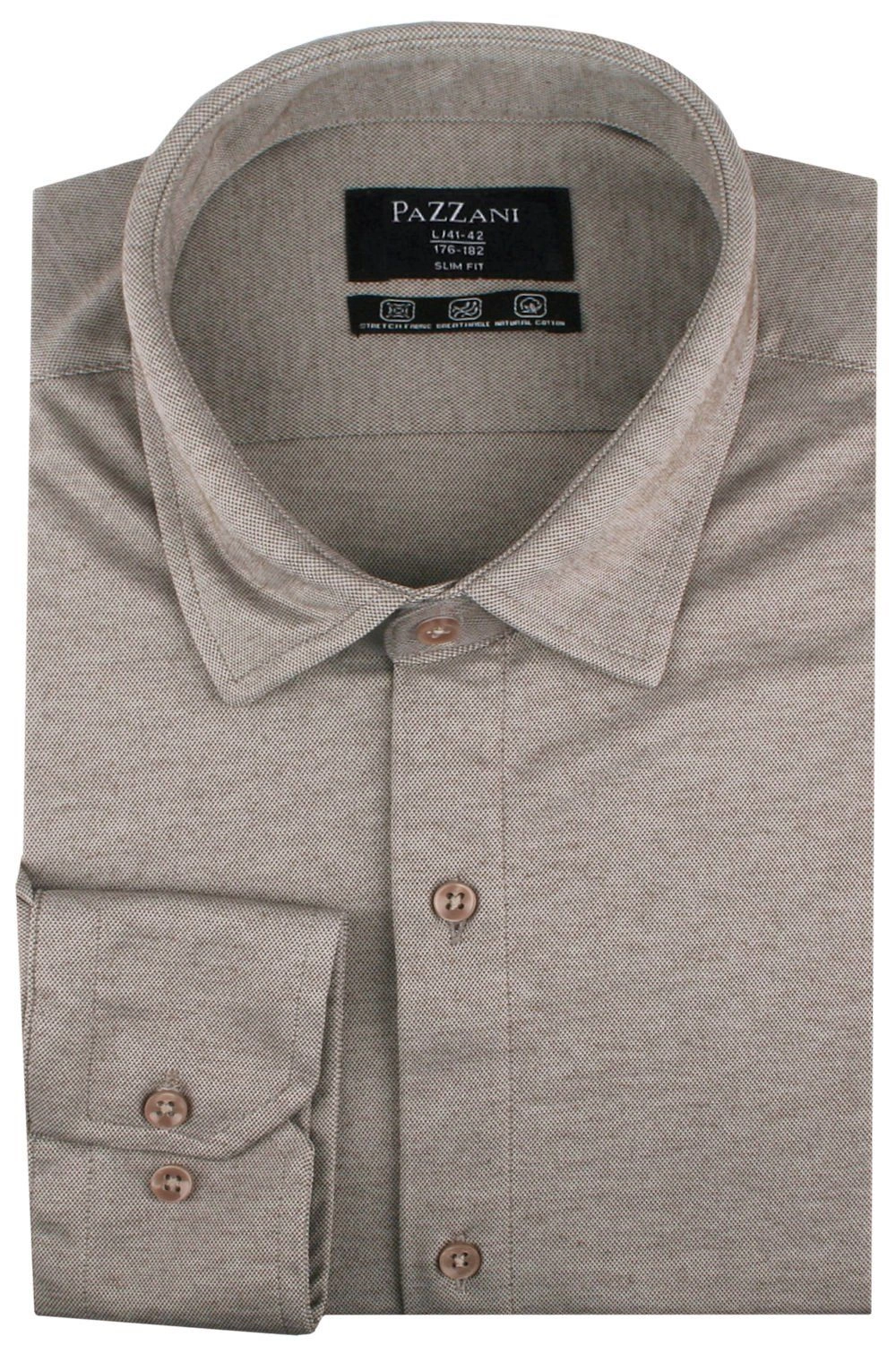 Męska Koszula z Dzianinowej Tkaniny - Krój Taliowany - Ciemny Beż
