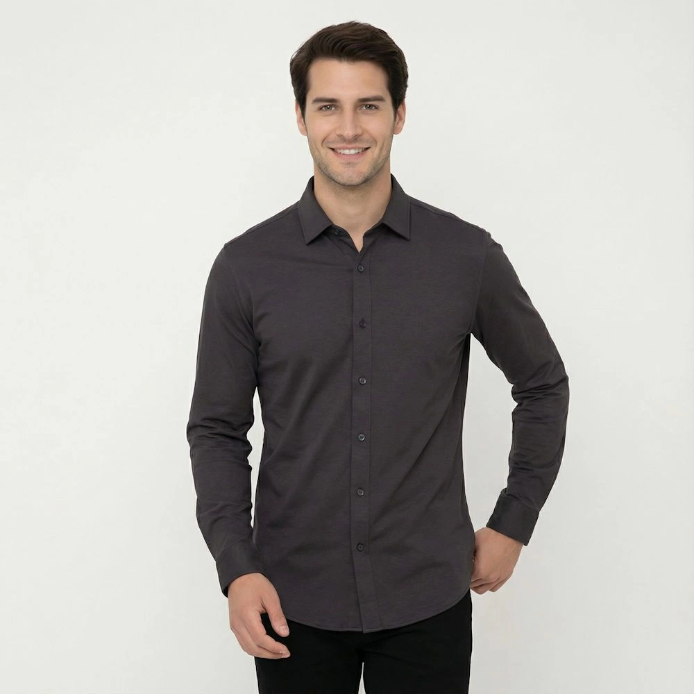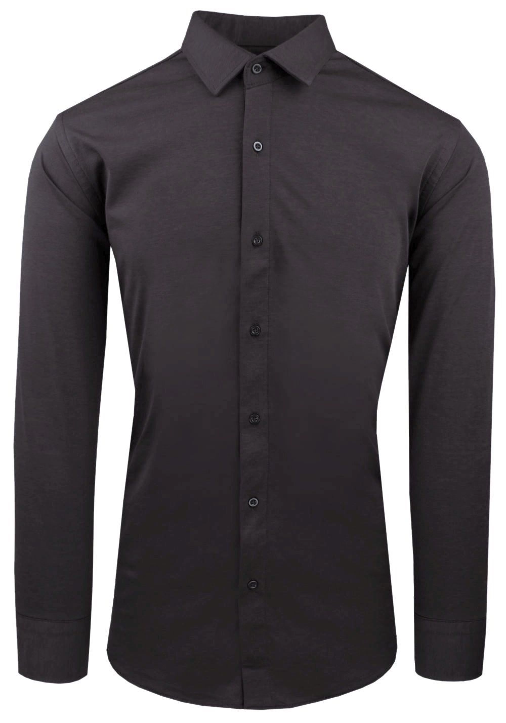 Męska Koszula z Dzianinowej Tkaniny - Krój Taliowany - Grafit