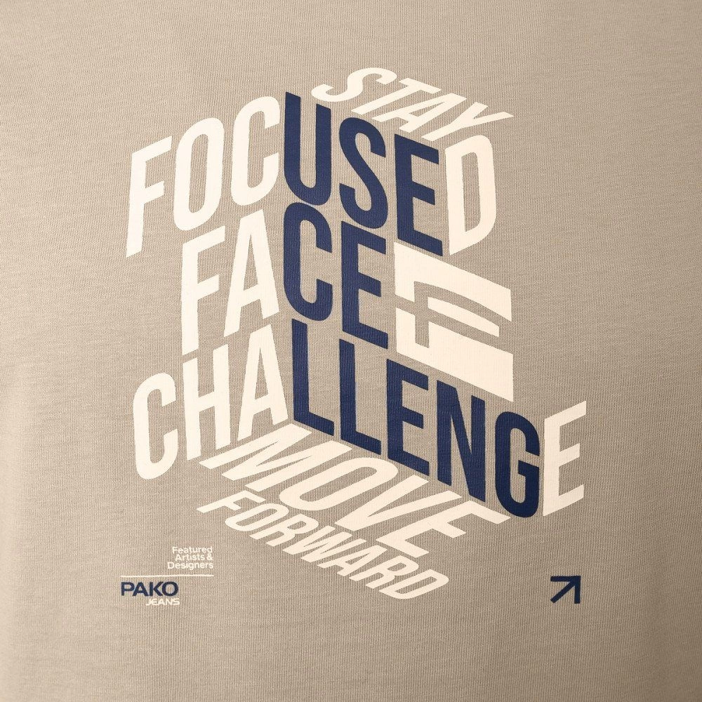 Męska Koszulka (T-Shirt) - Pako Jeans - Beżowa, Napis