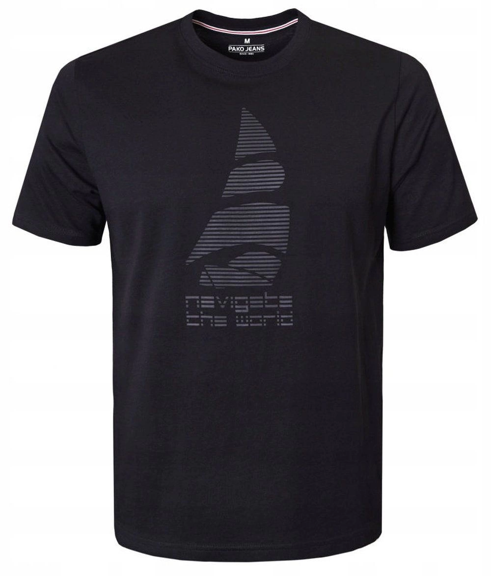 Męska Koszulka (T-Shirt) - Pako Jeans - Czarna, Motyw Żeglarski, Żagiel