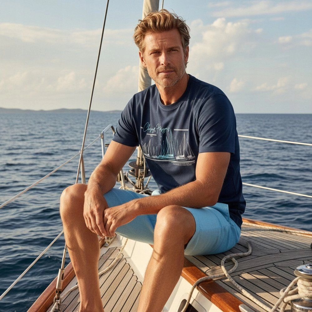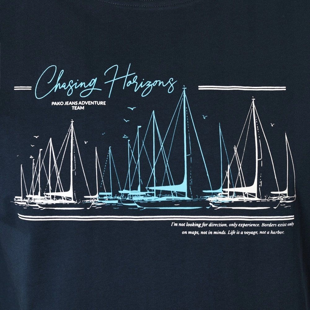 Męska Koszulka (T-Shirt) - Pako Jeans - Granatowa, Motyw Regatowy, Żeglarski
