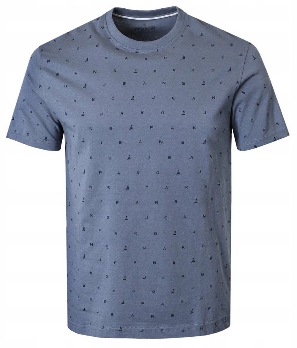 Męska Koszulka (T-Shirt) - Pako Jeans - Niebiesko-Stalowa, Drobne Literki