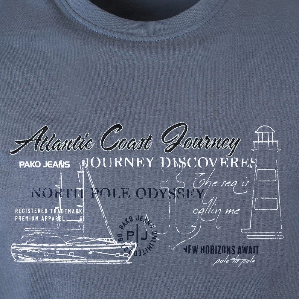 Męska Koszulka (T-Shirt) - Pako Jeans - Szaroniebieski, Motyw Żeglarski, Morski