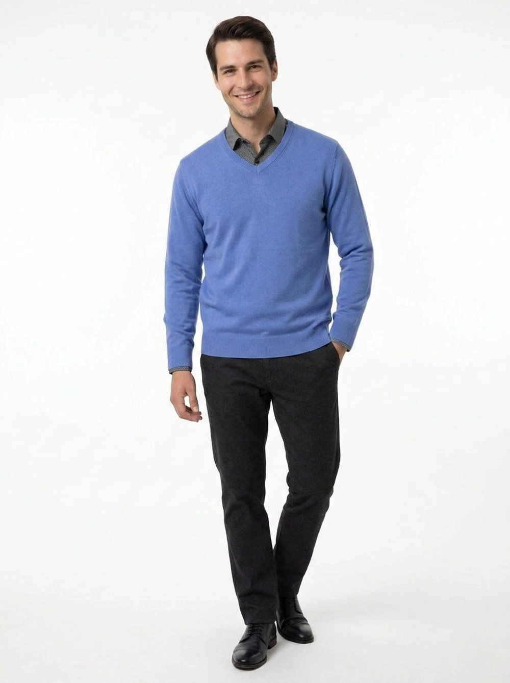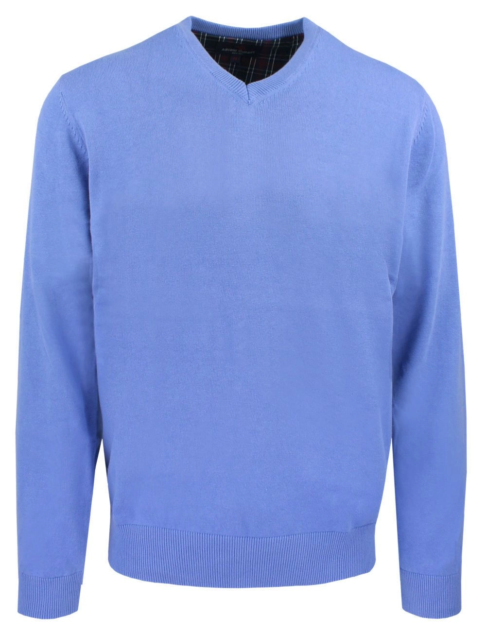 Męski, Bawełniany Sweter w Serek (V-neck) - Adriano Guinari - Niebieski