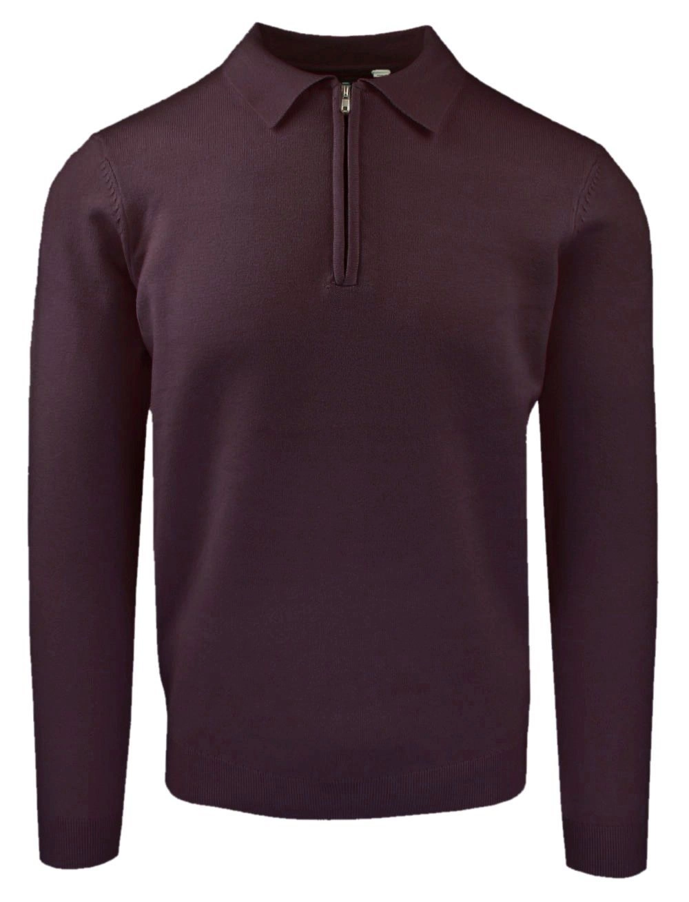 Męski, Lekki Sweter z Wiskozy z Kołnierzykiem Polo - Brave Soul - Bordo