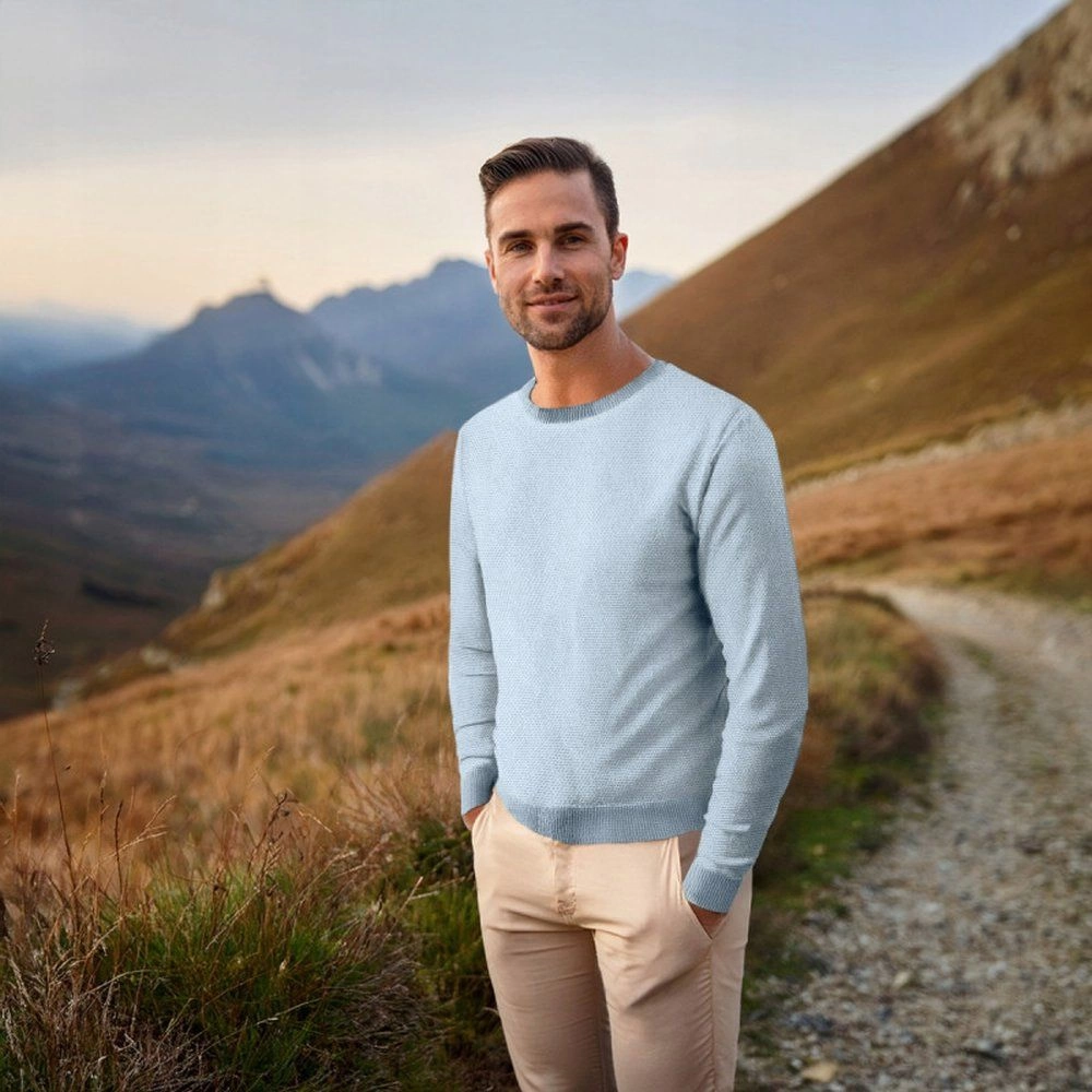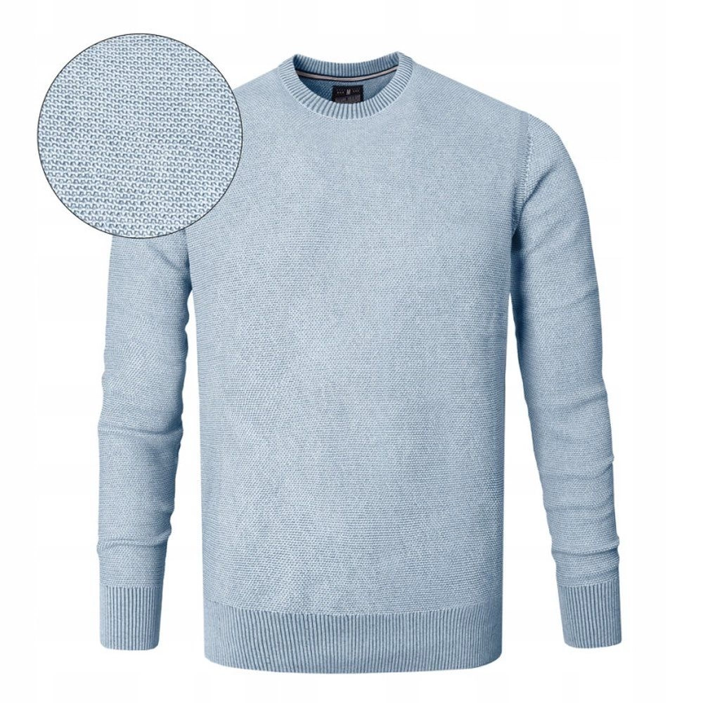 Męski Sweter Bawełniany, Delikatna Faktura Materiału - Pako Jeans - Niebieski