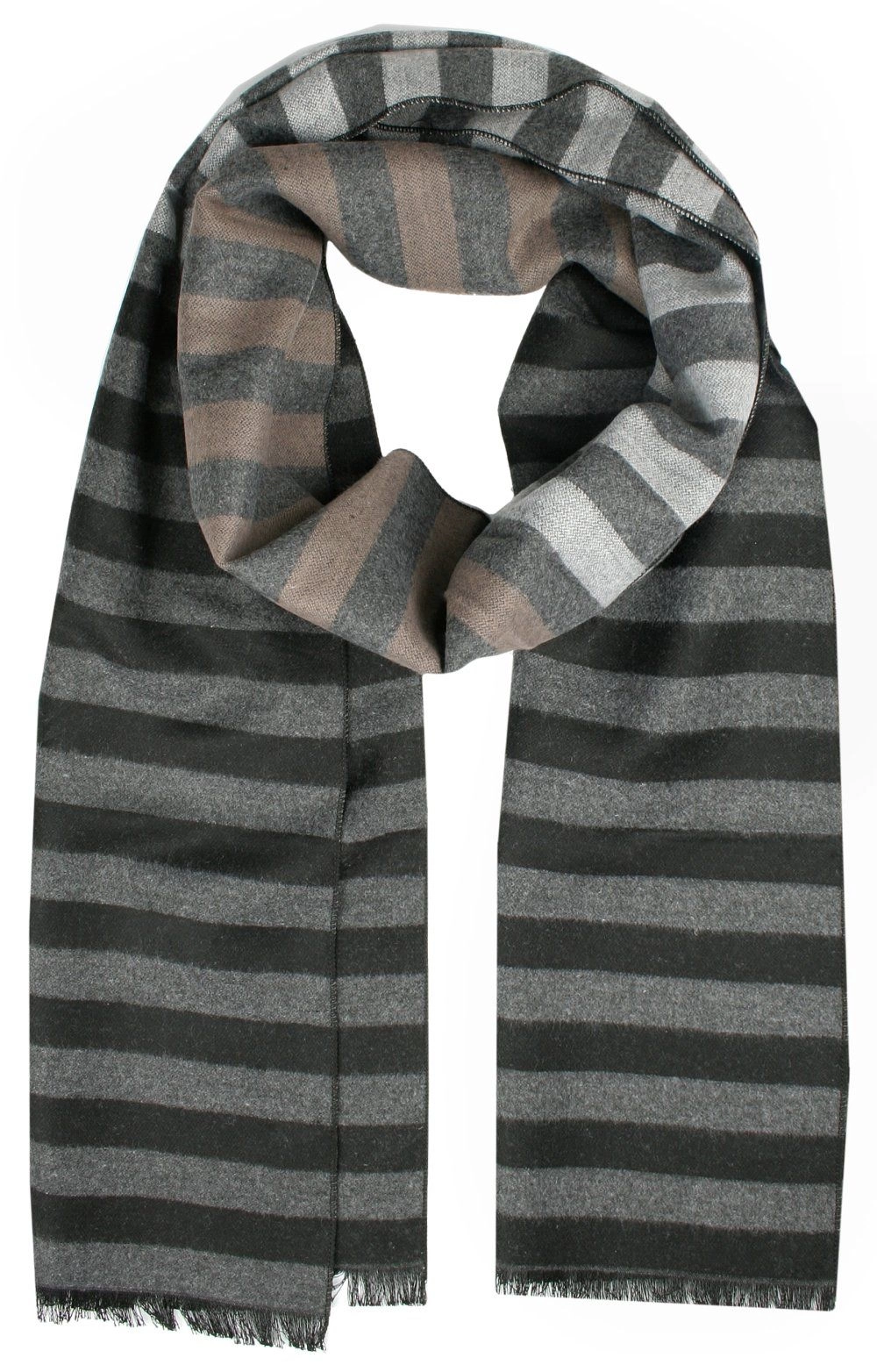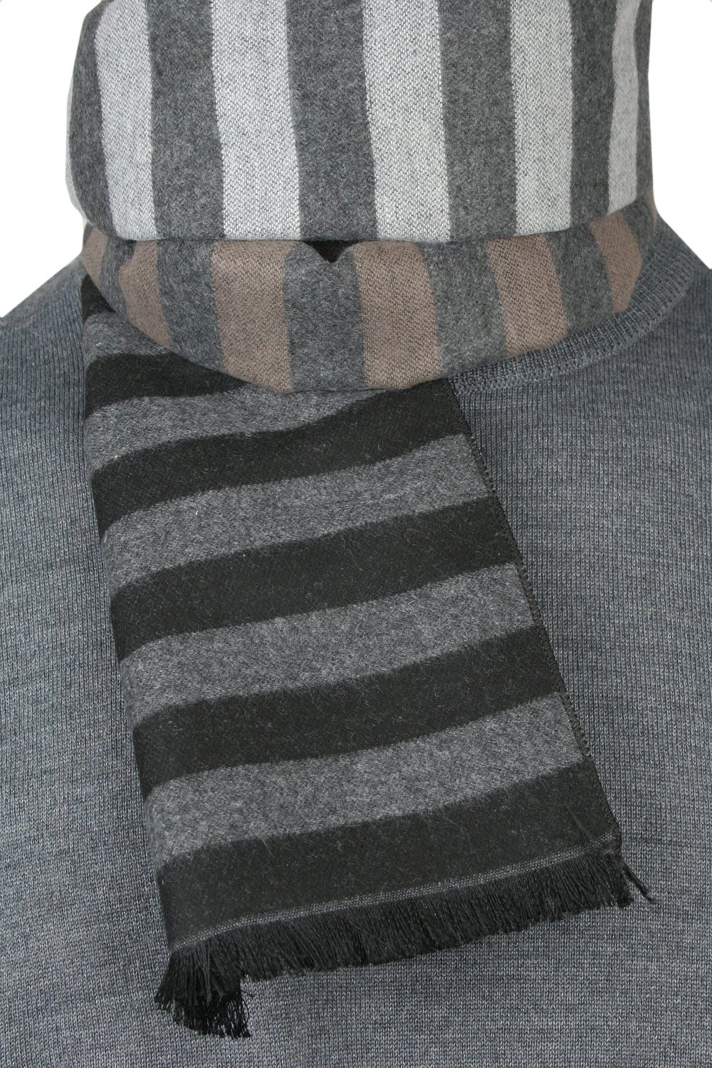Męski Szalik Alties - Paski Poprzeczne, Czerń i Popiel