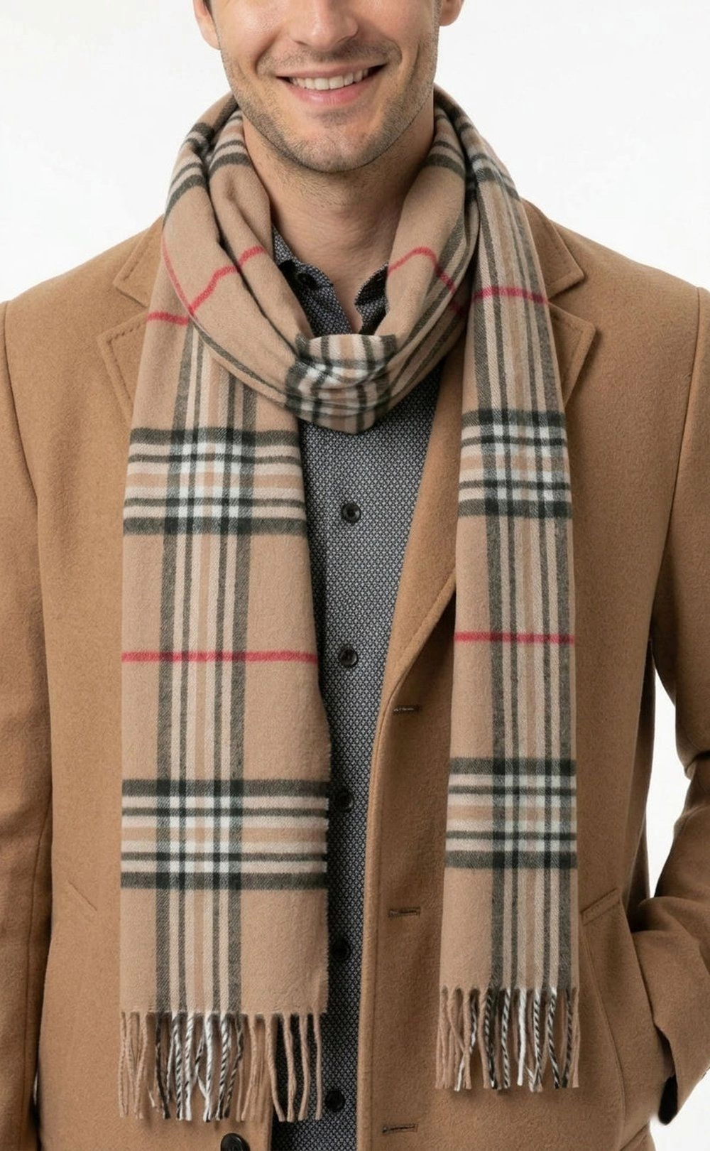 Męski Szalik V. Fraas - Cashmink - Beżowy Kolor, Kratka