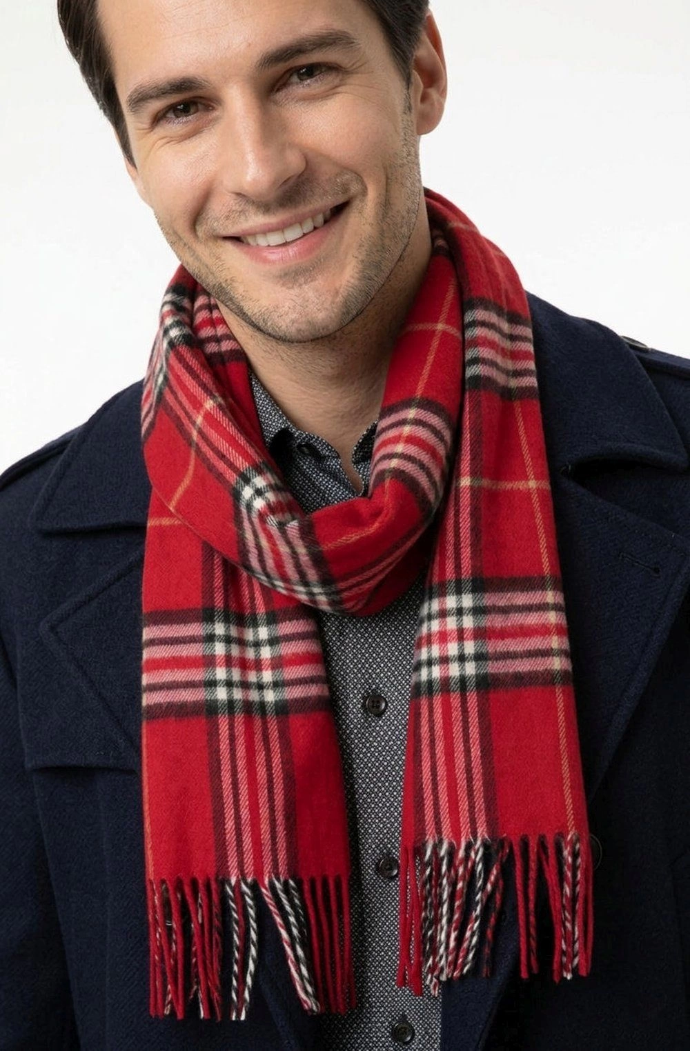 Męski Szalik V. Fraas - Cashmink - Czerwony w Kratę